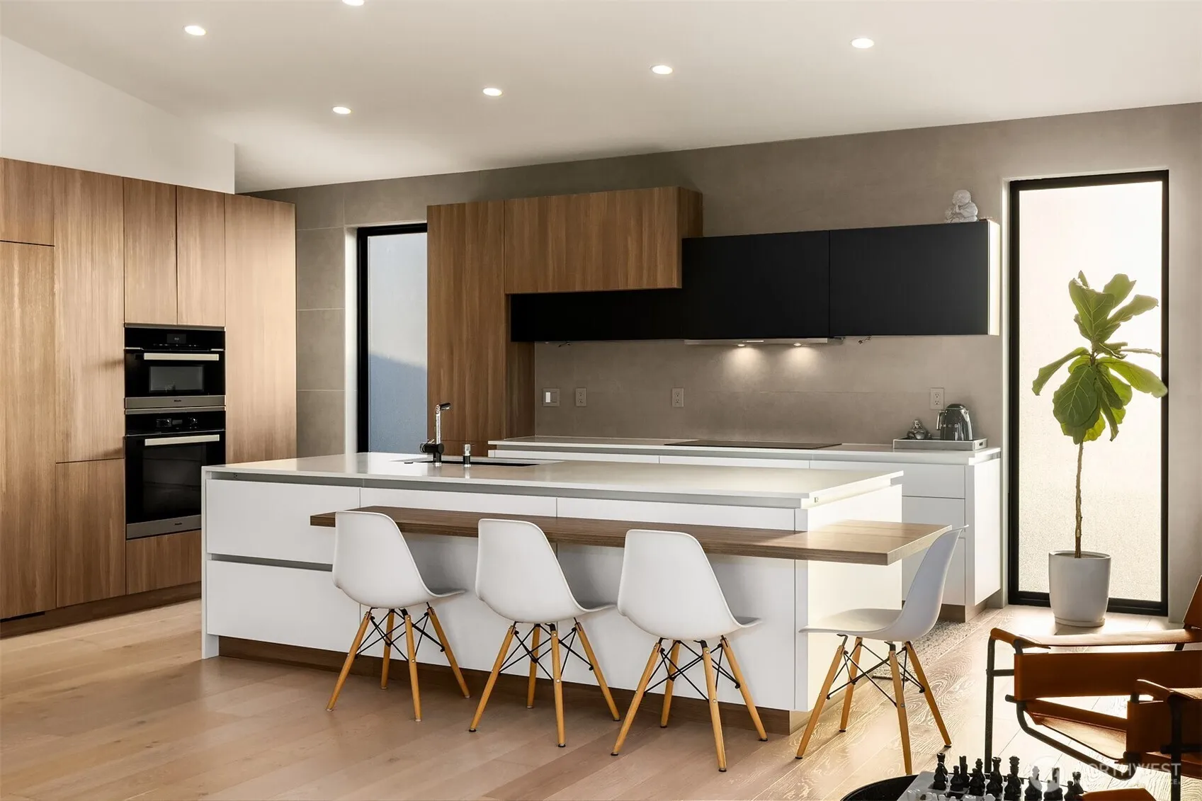 This contemporary gem was built from the ground up in 2019 and showcases a reverse floor plan that captures sweeping NE-facing views of both Lake Union & Lake Washington, Gasworks Park, Ballard, Kirkland, Mt. Baker & the Cascade mountains. Unparalleled privacy and solitude. The great room features floor-to-ceiling windows and offers an open-concept space boasting a chef’s kitchen and spacious living area that opens to a balcony & view deck. The bedroom level offers 4 serene bedrooms, including a primary suite with a lavish bath. The lower level, versatile for entertainment or as a guest suite, opens to a fully enclosed backyard. Two attached single-car garages as well as 3 additional off-street parking spaces.