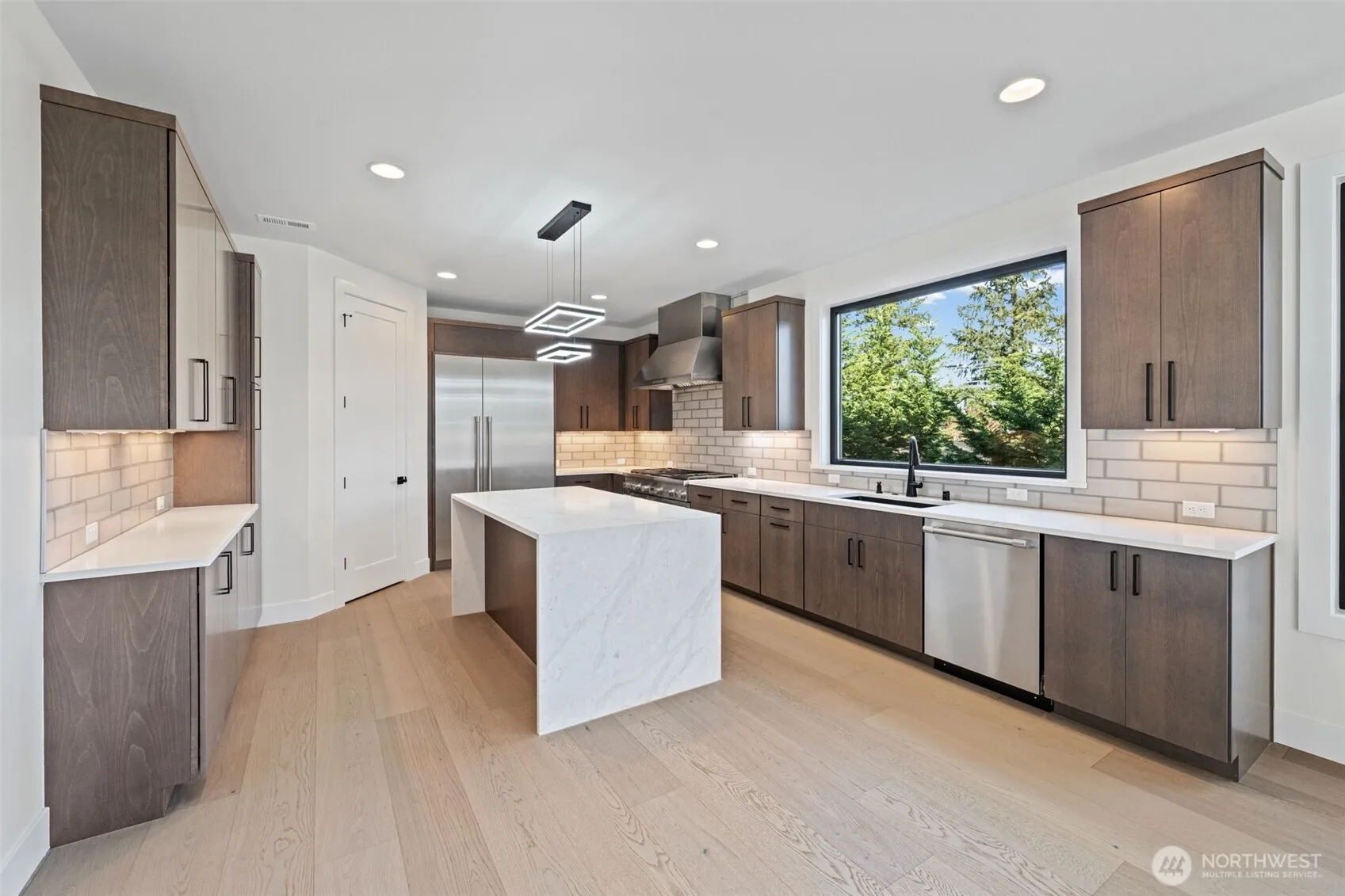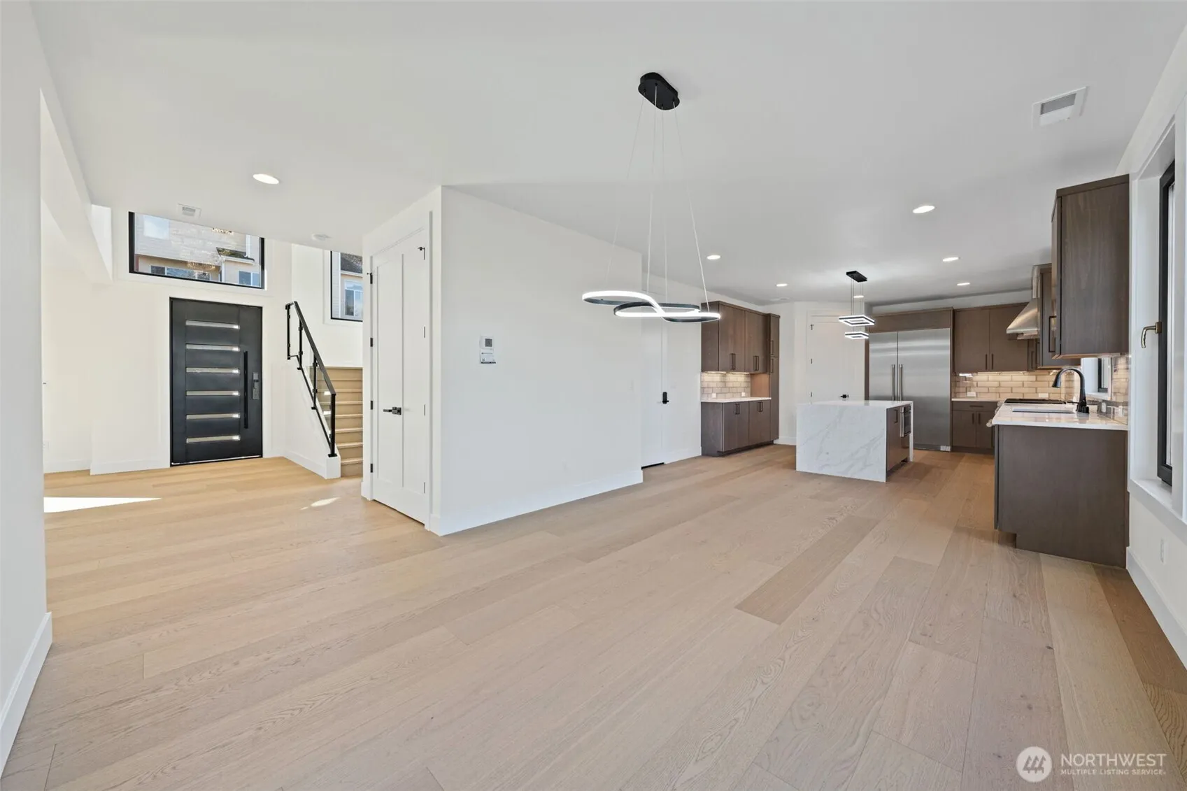 Exceptional new construction by Triton Homes, this stunning Northwest contemporary masterpiece sets a new standard for luxury living in Bellevue’s coveted Eastgate neighborhood. Thoughtfully designed with an emphasis on light, flow, and refined finishes, the expansive open floor plan creates seamless transitions between living spaces — perfect for intimate evenings and elevated entertaining alike. Soaring triple-pane, heavy-duty aluminum/vinyl windows bathe every room in natural light while capturing partial Lake Sammamish views, delivering superior energy efficiency and whisper-quiet sound insulation. The chef’s kitchen is appointed with top-of-the-line Thermador appliances, marrying professional-grade performance with sleek, contemporary aesthetics. A bold heavy-duty metal entry door anchors the striking exterior elevations, making an immediate impression of quality and sophistication. Inside, generous room proportions, premium materials, and meticulous attention to detail speak to Triton Homes’ signature commitment to craftsmanship. From the moment you arrive, every element — curated, considered, and expertly executed — reflects a home built not just to impress, but to endure. A rare opportunity to secure brand-new luxury construction in one of the Eastside’s most desirable addresses. Welcome home.
