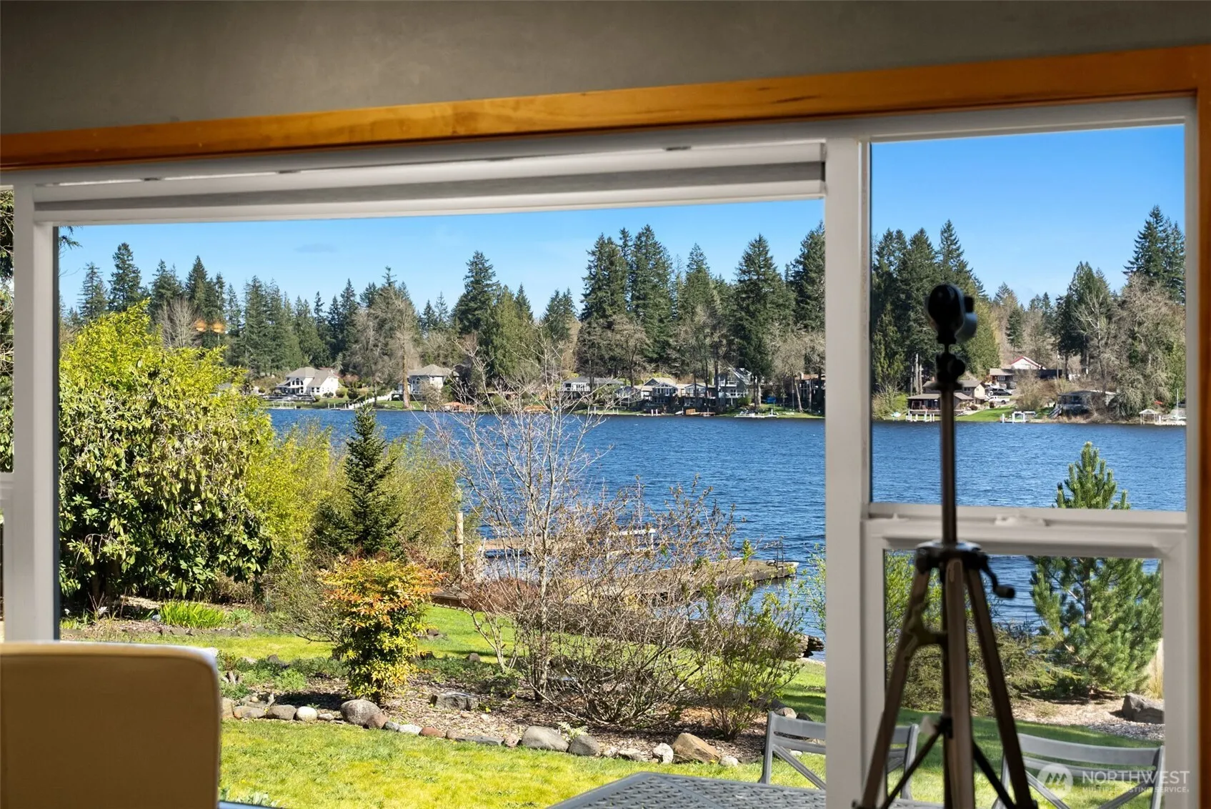 Rare no-bank waterfront living on Black Lake with 100’ of frontage and a cedar-topped dock ready for morning coffee or sunrise paddles. Set on expansive, park-like grounds lovingly maintained without chemicals by a master gardener, the property is a true sanctuary with grapevines, fruit trees, open sunny lawns and a natural habitat that draws eagles, osprey, mallards and more. Sunrises here are simply stunning. Inside, the home has been tastefully updated with warmth and character throughout. The kitchen blends quartz and butcher block counters, bamboo flooring and a seamless connection to the deck for easy indoor-outdoor living. Both bathrooms feature heated marmoleum floors, while the primary suite offers a clawfoot tub and tiled shower for a spa-inspired retreat. The generous lot offers flexibility and potential for a variety of future uses, providing space to expand, garden, recreate or simply enjoy the privacy and open setting. Additional features include a detached single-car garage with finished office space with stunning lake view, separate shop (31×23) with sliding doors, and a charming chicken coop, offering versatility for hobbies, work or a bit of homestead living. A rare opportunity to enjoy bright, sunny waterfront living in a setting that feels both peaceful and alive.
