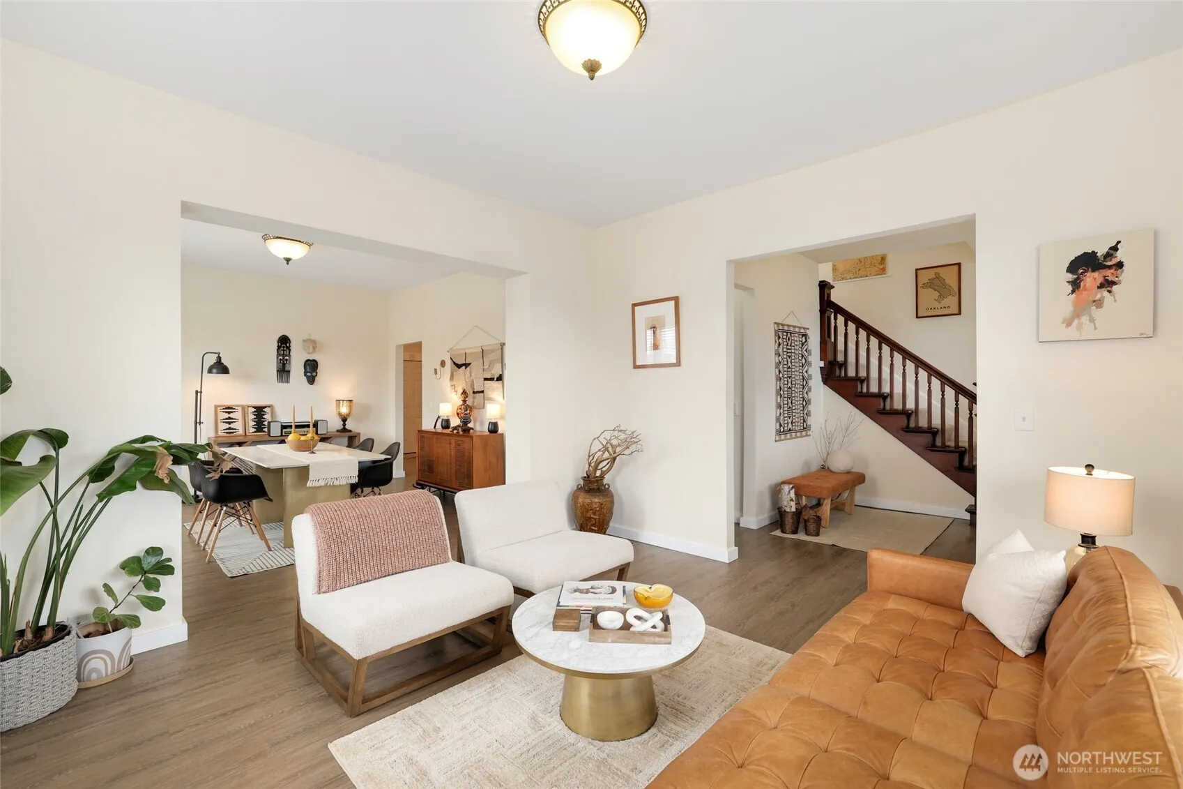 Timeless charm meets modern comfort in this beautifully updated 1898 Tacoma classic situated on an oversized corner lot in the heart of the McKinley neighborhood. Step through the covered front porch and into a grand entryway where the original wood staircase with turned balusters sets the tone for the character found throughout this home. Soaring ceilings, abundant natural light, and a flowing floor plan make this home live wonderfully large, with spacious living and dining rooms that open effortlessly to one another. The updated kitchen features shaker-style cabinetry, quartz countertops, a stylish stone tile backsplash, and a generous walk-in pantry. Upstairs you’ll find bright, well-proportioned bedrooms and a beautifully remodeled bathroom with dual vanities and contemporary fixtures. A cozy bonus room with a fireplace provides the perfect space to unwind. Step outside to a fully fenced backyard retreat complete with a patio entertaining area and lush lawn, all complemented by a detached garage offering valuable storage and workshop space. Nestled on a prominent corner lot just steps from the vibrant McKinley Hill district — Top of Tacoma, Dusty’s Hideaway, and local favorites — with downtown, the waterfront, and freeway access all just minutes away. Historic character, thoughtful updates, and a location that can’t be beat!