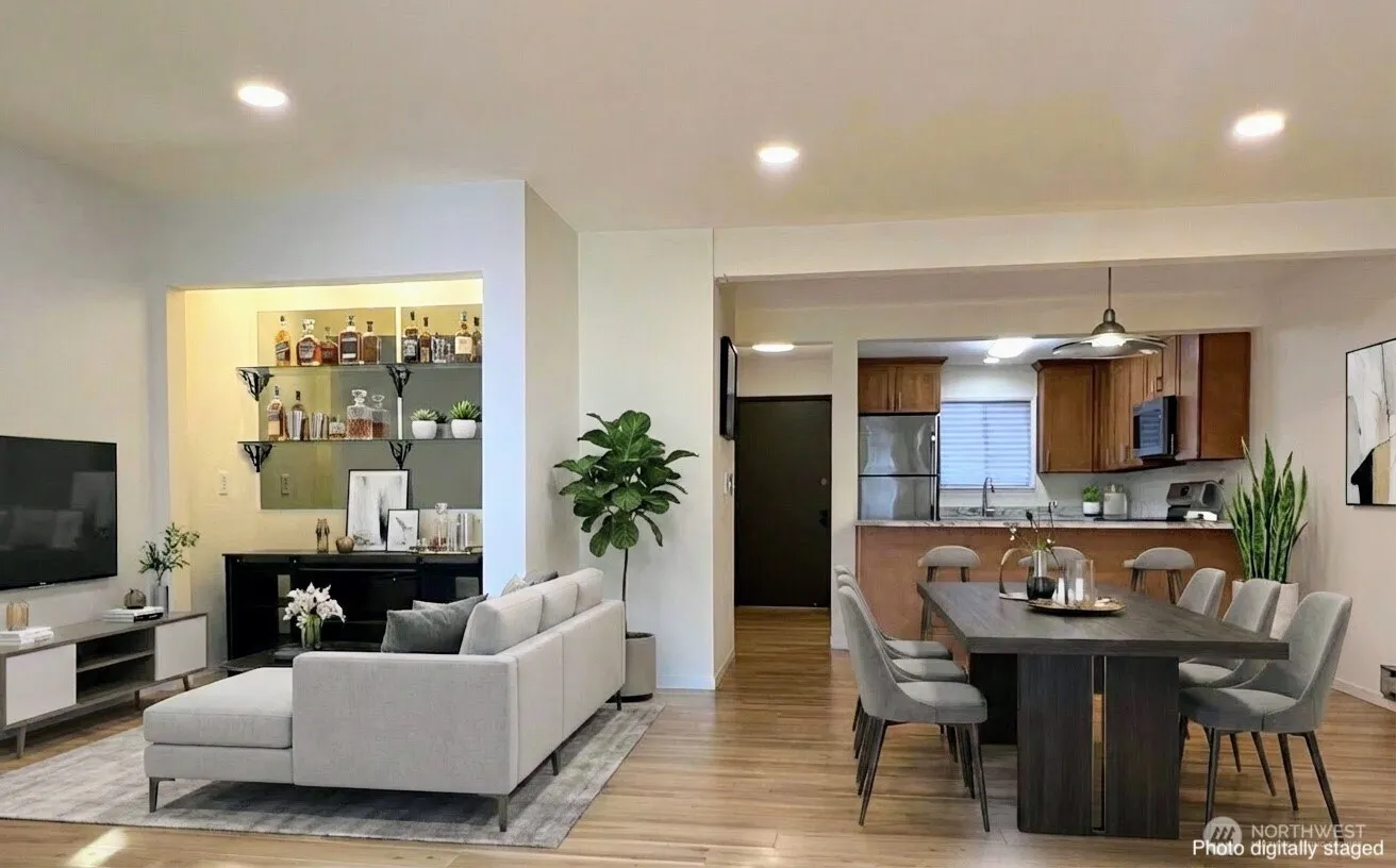 Location, location, location ! Situated on a quiet, tree-lined street in the heart of Capitol Hill, this pet-friendly community & move-in ready home offers the perfect blend of tranquility and city living. With an impressive 98 Walk Score and around the corner from Broadway, you’ll have some of Seattle’s best restaurants, bars, coffee shops, and nightlife right at your doorstep. An easy 3-minute walk to Link light rail and access to major transit routes makes commuting to downtown, South Lake Union, and beyond simple and stress-free. Inside, you’ll fall in love with the thoughtfully updated interior. The bright, open-concept living space is move-in ready—perfect for unwinding after work or hosting friends before a night out. Two well-sized bedrooms offer flexibility for guests, a home office, or both. The spacious kitchen features new stainless steel appliances, solid wood cabinetry, and slab granite countertops, flowing seamlessly into the dining area and expansive living room. Highlights include recessed lighting, a tiled fireplace with a sweeping hearth, a bay window with built-in bench seating, and a LED-lit sidebar — ideal for entertaining. The shared outdoor patio and garden are perfect for summer BBQs & relaxation while the secured, covered garage parking adds convenience, rounding out this exceptional opportunity to experience the best of Capitol Hill living. The Home is virtually staged.