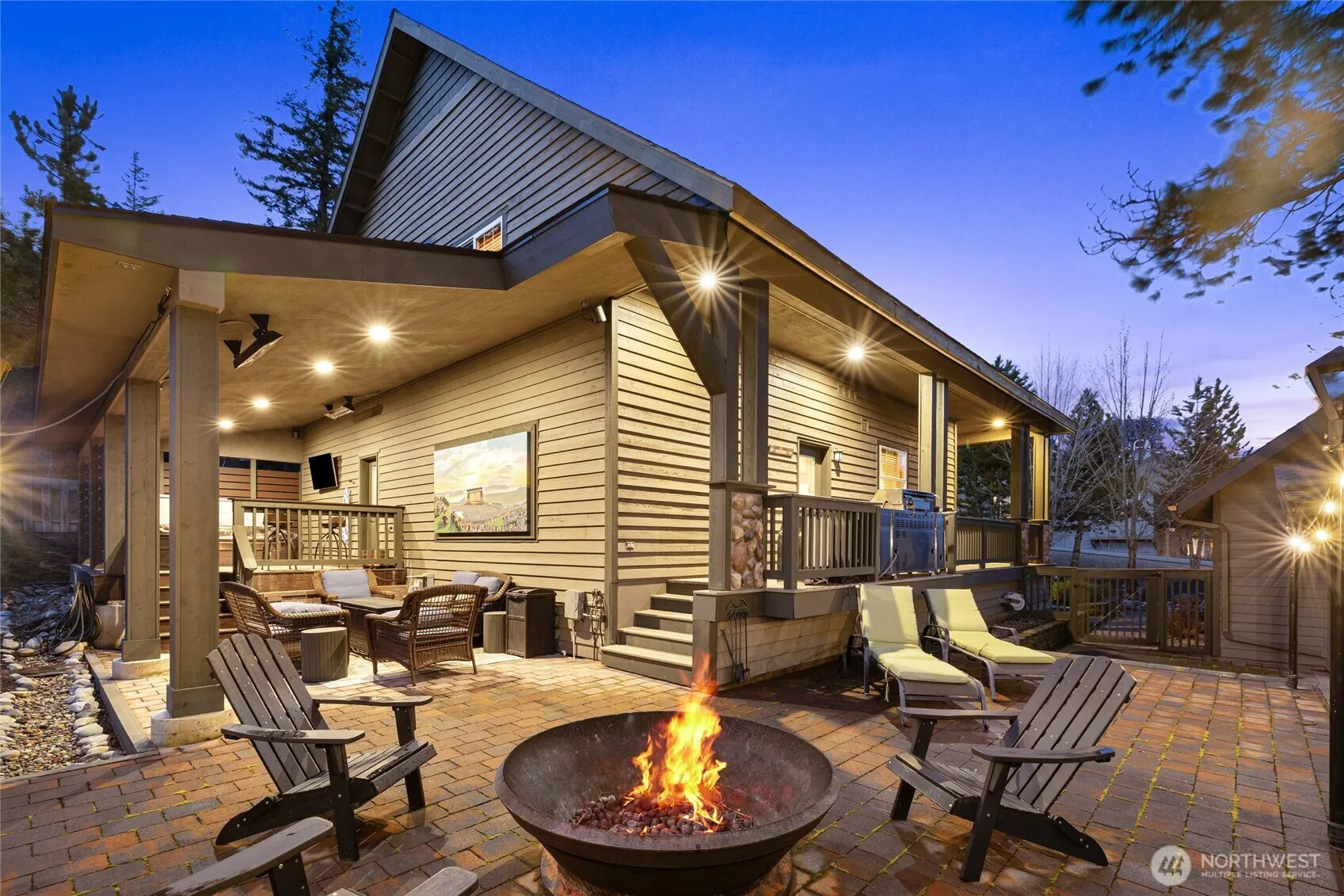 Tucked away in the sought-after Roslyn Ridge community, this fully furnished, turn-key mountain retreat offers the perfect blend of comfort, recreation, and year-round enjoyment. Featuring 3 bedrooms and 2.5 baths, the home is thoughtfully designed for both relaxing weekends and extended stays. The inviting great room showcases a vaulted ceiling and an impressive fireplace, creating a warm and welcoming gathering space after a day on the trails or snowmobiling. The open layout flows seamlessly into the dining area and kitchen, where recently updated appliances and a newer water heater add peace of mind. The primary ensuite is conveniently located on the main level and features an extra-large walk-in closet for exceptional storage. Upstairs, a spacious bonus room provides flexibility for a media room, game space, or additional guest accommodations. Situated on a large, fully fenced lot designed for easy maintenance, the outdoor living is just as impressive, with a covered hot tub, covered seating area, and fire pit perfect for entertaining or relaxing under the stars. Roslyn Ridge residents enjoy exclusive access to a private recreation center complete with a pool, hot tub, sports courts, and playground, making this the ultimate recreational mountain escape.