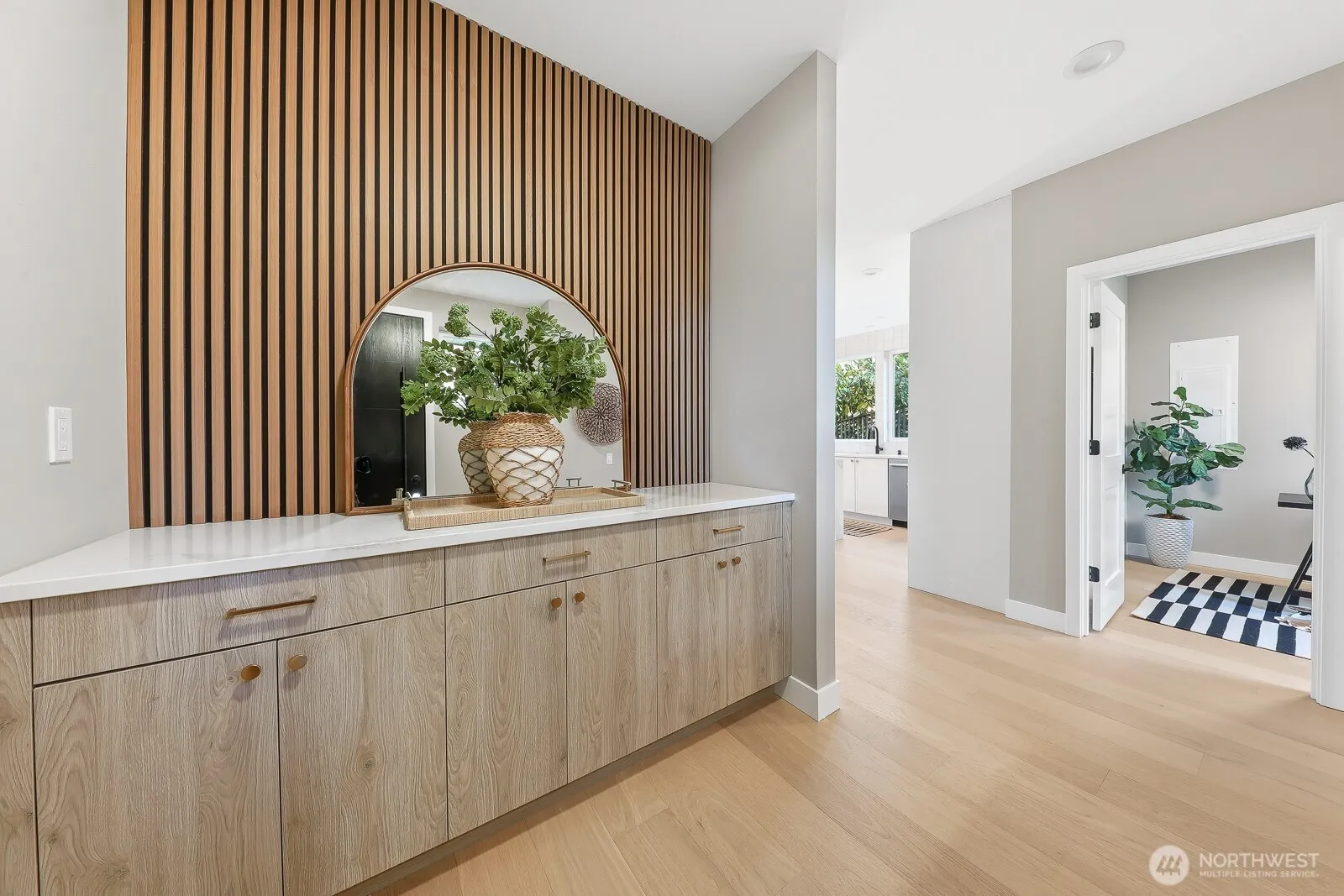 Experience contemporary Northwest style paired with timeless luxury in this stunning new construction home. The main level showcases a gourmet kitchen with a quartz island, custom cabinetry, premium appliances including a double oven, and a sleek wet bar. Enjoy a formal dining room, an inviting living room with a fireplace, and a dedicated office—ideal for working or studying from home. Upstairs features vaulted ceilings, four bedrooms, two full bathrooms, and a convenient laundry room with washer and dryer included. The spacious primary suite offers a spa-inspired bath with a soaking tub, oversized shower, heated floors, and a walk-in closet. The lower level provides additional flexibility with a second living room or media space, a full bath, and access to a patio and fully fenced backyard—perfect for relaxing or entertaining. A mudroom connects to the EV-ready two-car garage. For added comfort and peace of mind, the home is also equipped with a gas-powered generator for backup power during outages.