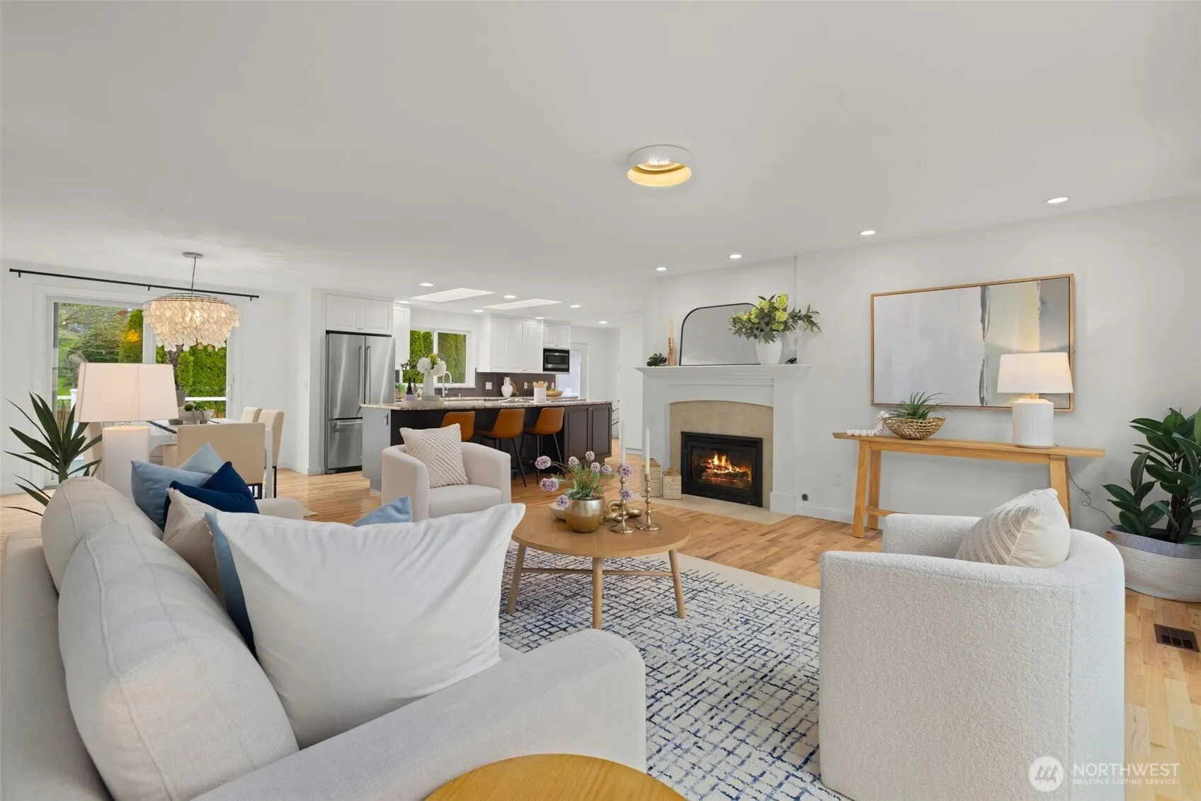 Beautifully updated Finn Hill home on an expansive ~11,000 SF level lot—fully fenced and just moments from parks, trails, and Totem Lake amenities. Extensively improved with over $200K spent since 2022, this home blends thoughtful modern updates with timeless comfort. Remodeled kitchen features custom cabinetry, slab granite, oversized island, Wolf cooktop, top of the line double ovens, and new refrigerator – ideal for everyday living and entertaining. Spacious main level showcases refinished hardwood floors, fresh interior & exterior paint, new lighting, and all-new solid wood doors throughout all done in 2022-2023. Hall bath and primary bath fully remodeled with quality finishes and design. Major system upgrades include new roof & gutters (2026), new furnace & A/C (2023), tankless water heater (2022), and updated double-pane windows (2022). Added CAT6 wiring supports today’s connected lifestyle. Lower-level family room offers flexible living space with adjacent 3/4 bath—ideal for guests, multi-generational living, or potential 4th bedroom conversion. Outdoor spaces shine with an entertainment-sized deck, newly built front and back decks (huge storage area underneath), large grassy yard and ample parking including RV or boat space – perfect for gatherings. Prime location near lake front Denny Park, 5 mins to Saint Edward State Park, and Totem Lake Village. Served by top-rated Lake Washington School District. Pre-inspected and move-in ready.