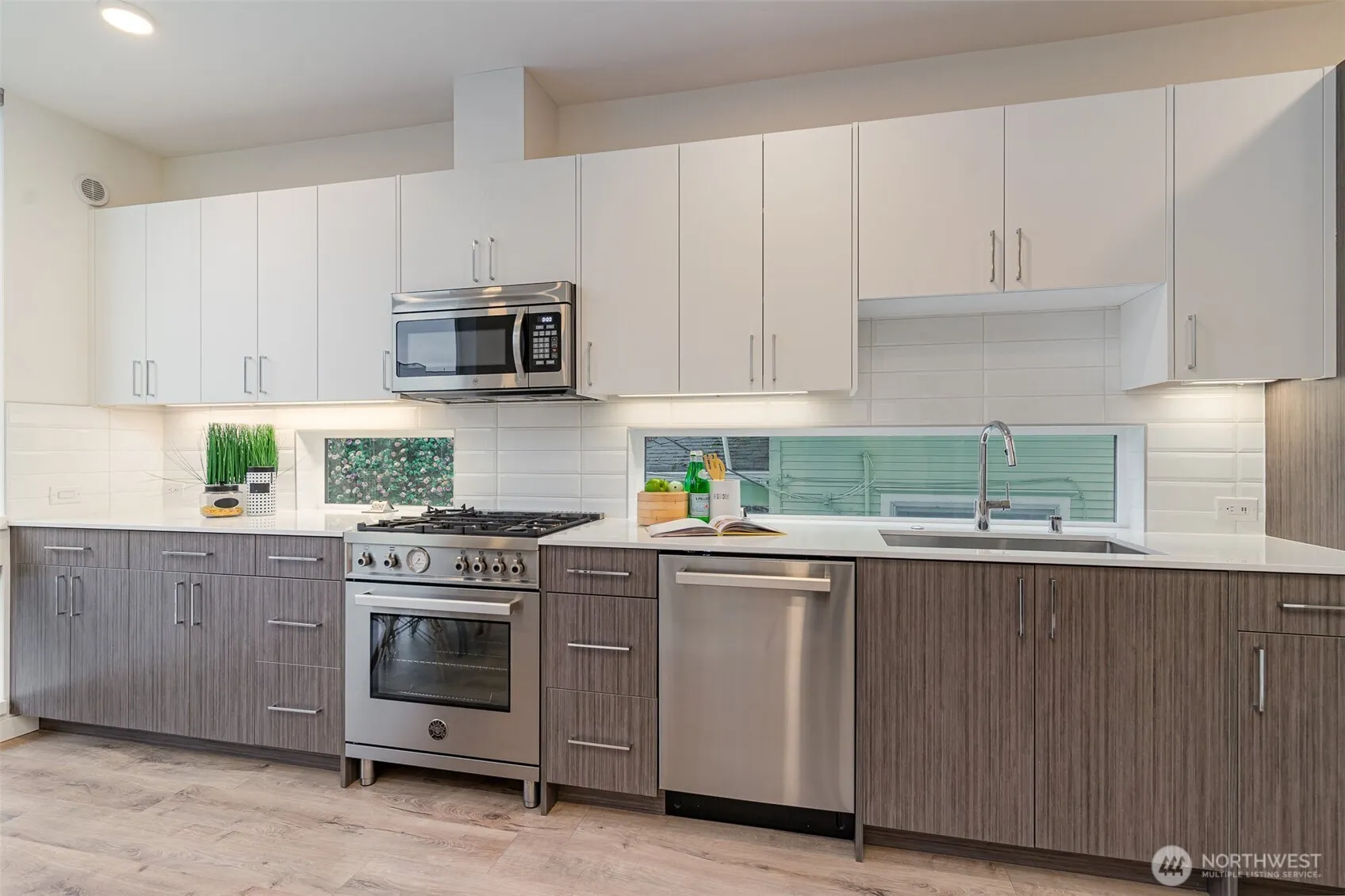 Isola home in the sought after Green Lake community. Come see what thoughtful, open floor plans and attention to details look like. You will enjoy all the features that this 2 BR home has to offer including wide plank Evoke flooring, efficient mini-split heating/cooling, a kitchen equipped with Bertazzoni gourmet appliance suites. Don’t miss the rooftop decks and amazing views! All this in the heart of Green Lake and a walk score of 87! PCC is literally cross the street. 3 minute walk to Green Lake, minutes to Starbucks, restaurants and more. A/C in living room and master bedroom.Roosevelt Lightrail state is walkable around 10 minutes. Vacant. Using photos from last year.