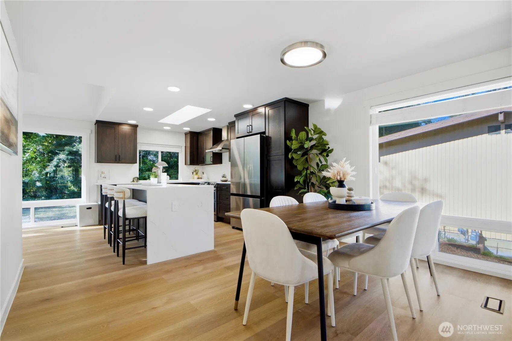 Welcome to this beautifully updated Somerset home, thoughtfully designed for modern living while preserving timeless charm. This 4-bedroom, 3-bath residence features an open-concept layout with a soaring vaulted living room, skylights, and large windows that fill the home with natural light. The updated kitchen (2024) showcases an expansive 8′ island, quartz countertops, full-height backsplash, stainless steel appliances, and abundant cabinetry. Recent upgrades include new flooring (2023), renovated bathrooms (2023), new lighting fixtures, new stair railing, upgraded electric fireplaces, new doors and windows, and new attic insulation. The spacious lower level offers a flexible living space ideal for a family room, guests, or home office. Enjoy relaxing on the front deck with new decking and railing. Convenient I-90 access for easy commuting to Seattle, Bellevue, and major tech hubs. Located in the highly sought-after Bellevue School District: Somerset Elementary, Tyee Middle, and Newport High School.
