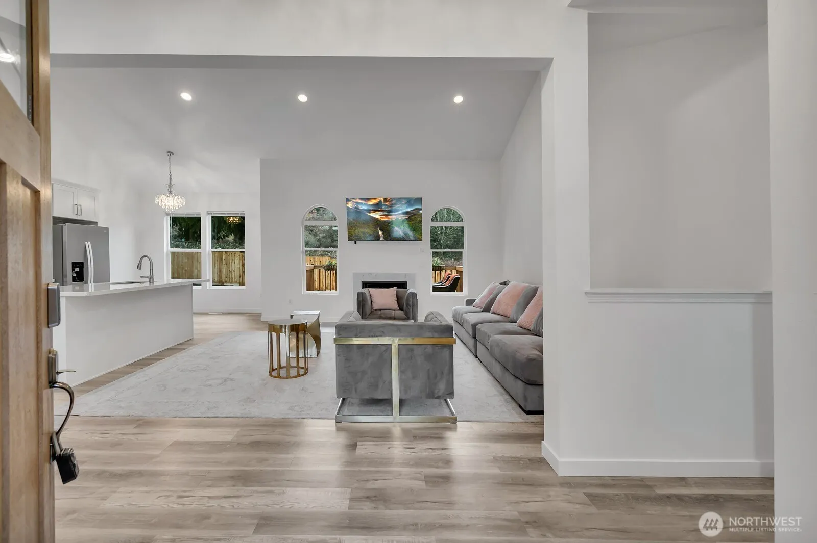 Set on a private 1.27-acre estate in a premier growth area, this stunning Alderwood rambler blends space, elegance, and future opportunity. Thoughtfully enhanced in 2023, the fully remodeled equestrian-ready grounds offer endless possibilities—horses, a custom dream shop, private track, or potential 3-lot subdivision. Inside, soaring vaulted ceilings create an airy, grand ambiance, complemented by a spacious chef’s kitchen, refined dining with coffered ceilings, and a warm gas fireplace. The primary suite is a true retreat, featuring a spa-inspired 5-piece bath with jetted tub and an expansive sitting area designed for comfort and relaxation.