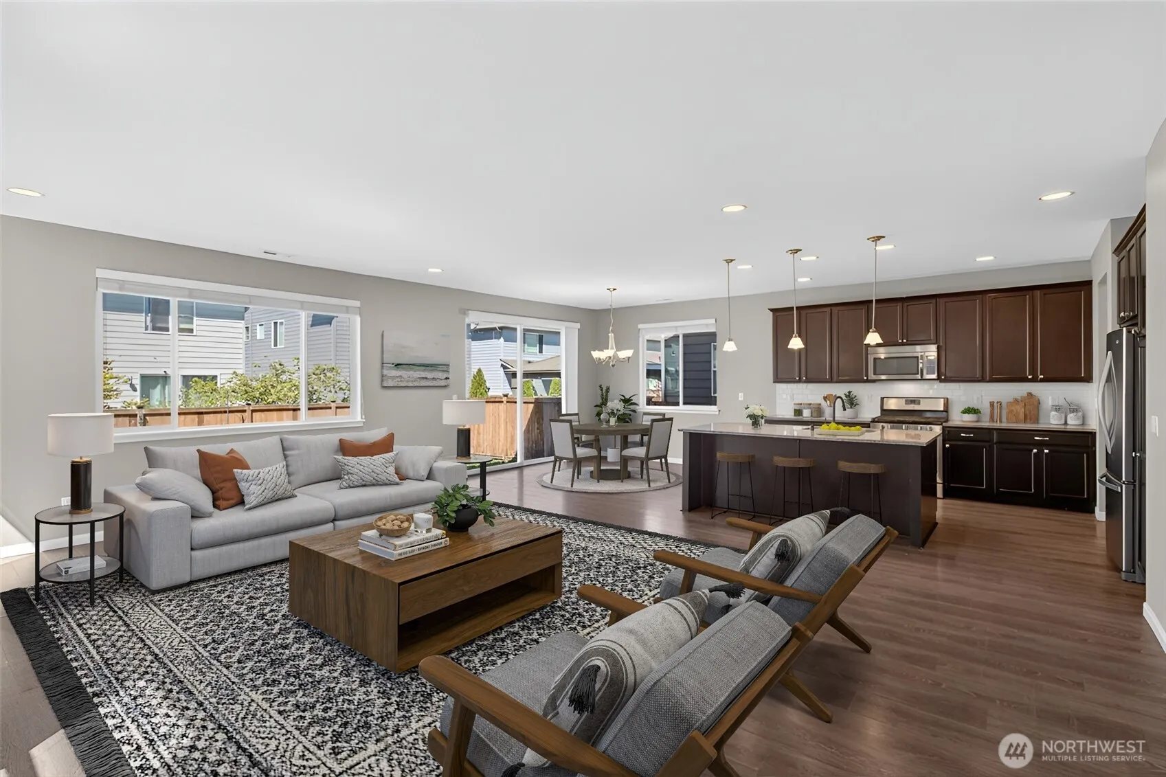 Beautifully maintained Craftsman-style home in the desirable McCormick community offering modern comfort and a functional open-concept layout. The spacious main level features a light-filled living area that flows seamlessly into the dining space and well-appointed kitchen with a large island, ample cabinetry, and walk-in pantry, perfect for everyday living and entertaining. Upstairs, enjoy a versatile loft ideal for a home office, media room, or play space. The generous primary suite includes a walk-in closet and ensuite bath with dual vanities, soaking tub, and separate shower. Additional bedrooms are well-sized with great natural light. Step outside to a low-maintenance yard with patio space for outdoor dining and relaxation. Attached two-car garage and quality finishes throughout. Located near parks, trails, shopping, and commuter routes, this home offers the perfect blend of comfort, style, and convenience in a sought-after neighborhood. Some images in this listing have been virtually staged.
