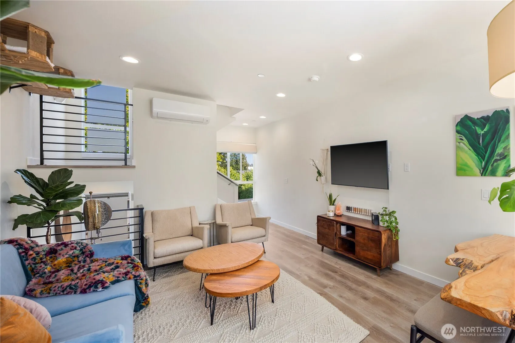 Modern Green Built home in a prime North Seattle location with no HOA and a layout that lives large. The open main level is designed for everyday comfort and easy entertaining, featuring a spacious dining area that comfortably seats 6, sleek stainless steel appliances, and smart WiFi-enabled appliances that bring convenience to daily living. A dedicated main-level office adds flexibility for work-from-home needs and can also function as an additional bedroom. Upstairs, well-designed living spaces are paired with a standout rooftop deck where you can take in Mount Rainier views and enjoy morning coffee, sunset skies, or evenings under the stars. Thoughtful modern finishes, energy-efficient Green Built construction, and versatile spaces make this home a rare combination of style, function, and location.