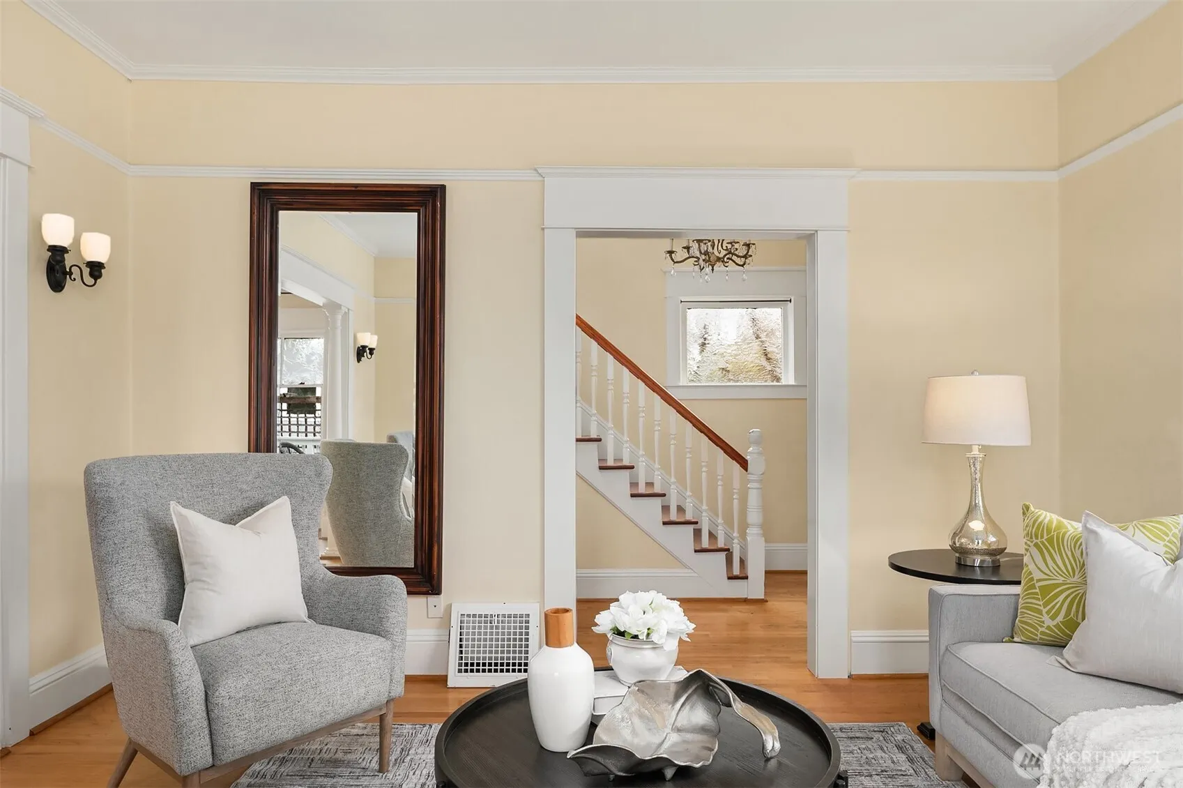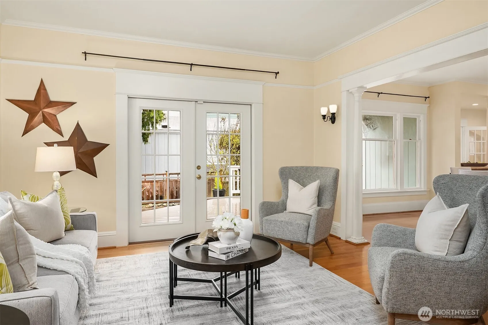 Experience this majestic home perched high above the street, offering panoramic views of Green Lake, Mount Rainier and downtown Seattle, while captivating you with it’s timeless elegance and inviting charm. Located on a quiet street just a short stroll from the lake and vibrant neighborhood favorites. Step inside to experience all the character of light filled living spaces with the open floor plan including large living and dining room creating an airy, serene atmosphere. French doors lead to a covered deck and beautifully landscaped patio-ideal for entertaining or relaxing year-round. The spacious kitchen features bar seating and a large pantry, making it as functional as it is stylish. A thoughtfully designed layout includes a main-floor office/den, while upstairs are 3 bedrooms, a convenient laundry room and views of the mountains, city and lake. The fully fenced backyard offers a private sanctuary with raised garden beds. Alley access to a large 2 car garage and rare off street parking for additional vehicles. The lower level provides 646 sq. feet, ready for you to design your perfect dream space. Lovingly maintained and move in ready, this home offers modern comforts including new roof, water heater and energy efficient mini splits. Opportunities like this are rare-views, style, location and lifestyle all in one. Don’t miss this chance to own a truly special home in one of the area’s most sought after neighborhoods.