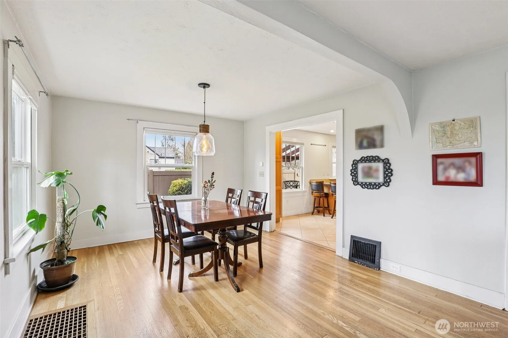 Covered front porch welcomes you through a 6-lite leaded glass front entry door. Living room features a brick surround gas fireplace with mantle, and hearth and flows seamlessly into the dining room which offers convenient access to kitchen. The breakfast bar stainless kitchen offers granite countertops with tile backsplash paired with an abundance of soft-close cabinetry, some with pull-outs and glass panes, lazy susan, pantry cabinetry, wine storage, under-cabinet lighting, reverse osmosis water filtration system, recessed lighting. Primary en-suite on upper level offers a walk-in closet, bath with single-sink vanity and tiled shower. Second bedroom on the main includes a walk-in closet, and exterior access. Third bedroom, upper level, features a walk-in closet. Cozy loft provides bench seating with window view of the backyard. Unfinished basement includes a laundry area with washer, dryer, utility sink, cement floor, and exterior access. Full bath on main offers a vessel sink stone countertop vanity, combo soak tub and shower. Additional interior features include single-panel interior doors, hardwood, tile and vinyl flooring, high baseboards, updated PEX plumbing and wiring. Exterior offers a covered front porch, two covered patios, extended patio, and deck, along with a one-car detached garage. Landscaped corner lot with sprinklers. The property provides inviting outdoor spaces and practical amenities. Mortgage savings may be available for buyers of this listing.