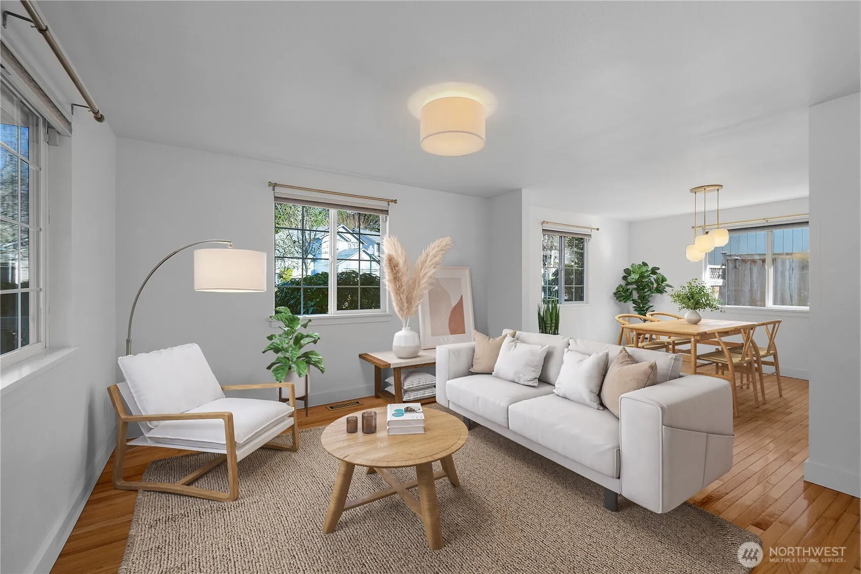 Corner-lot charm meets modern comfort in this beautifully refreshed two-story home in Whisper Ridge! From the moment you step into the soaring vaulted entry, you’ll appreciate the light-filled spaces and effortless flow designed for everyday living and entertaining alike. The main level offers inviting living and dining areas, plus a stunning contemporary kitchen featuring sleek quartz countertops, stainless steel appliances, and an eating bar. The kitchen connects to the spacious family room, complete with a new freestanding gas stove that adds warmth and ambiance. The private, fenced backyard offers an exceptional outdoor retreat with an expansive paver patio and covered seating area designed for year-round enjoyment. Best of all, the low-maintenance yard means more relaxation and less upkeep. Path to sweet community park is practically outside your backdoor. Upstairs, the spacious primary suite provides a peaceful escape with large windows, a walk-in closet, and a private bath. Two additional bedrooms and a full bathroom complete the upper level, offering flexibility for guests, work-from-home space, or hobbies. Major updates include a newer roof, furnace, free-standing gas stove, water heater, and air conditioning for added peace of mind. With HOA-maintained landscaping, your weekends are truly your own. All of this in a fantastic Olympia location close to everything you love. Comfort, convenience, carefree living and Olympia Schools. McKenny Elementary! Virtually staged.