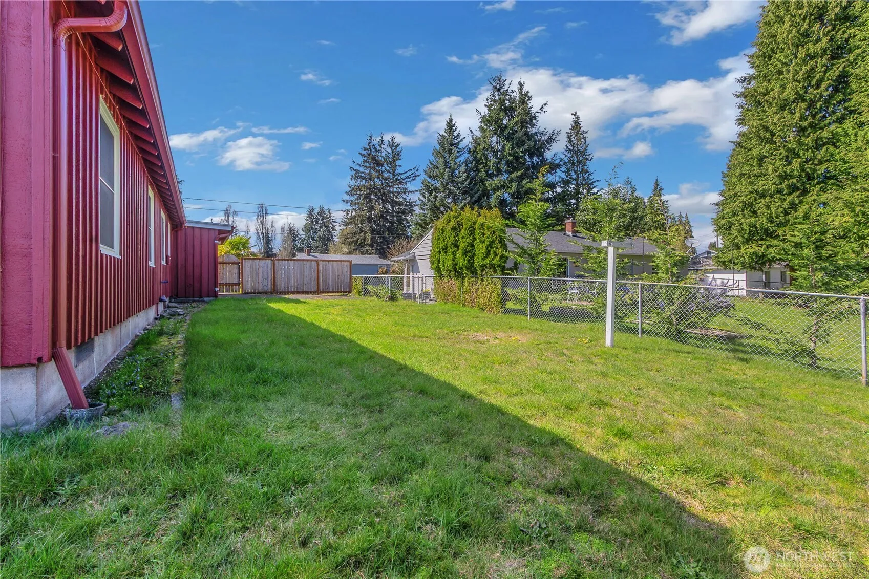 Rambler with large corner lot fully fenced, 3 bedrooms, 1 bath, large living room and front room, dining room, dbl pane windows, hardwood floors under carpet, 1 car attached garage, newer roof, F/A gas heat, home is mostly original just waiting for updating! great location, near schools, bus line, parks and shopping.