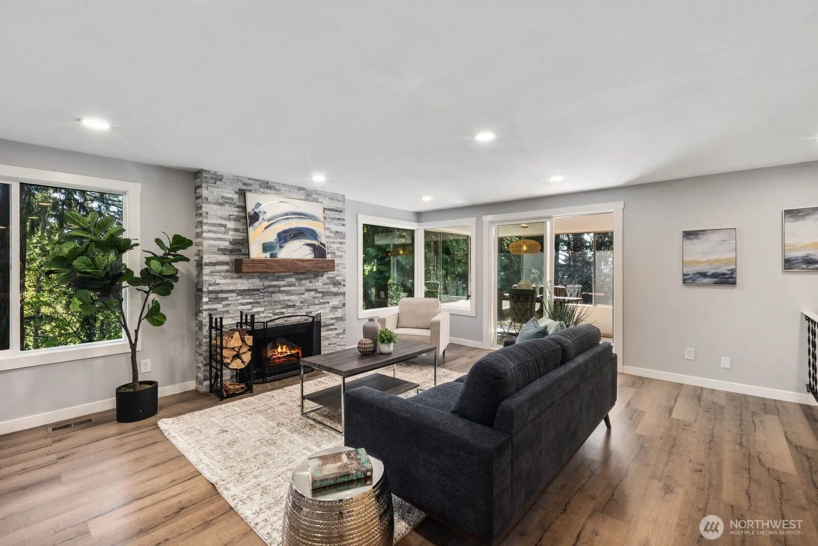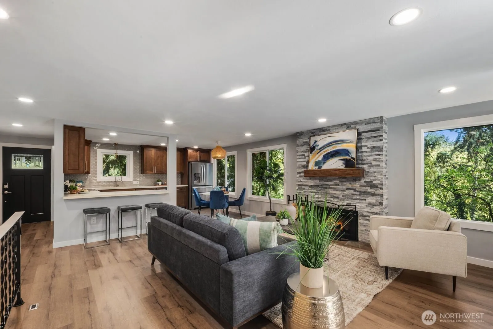 Tucked against a private greenbelt, this light-filled home offers the perfect blend of comfort and functionality with a wow factor rare year round sunroom. The spacious kitchen features quartz countertops, ample prep space, and an easy flow for everyday living and entertaining. Thoughtfully designed, the home offers 4 bedrooms for flexibility, whether hosting guests, working from home, or creating a retreat of your own. The primary suite provides a quiet escape with custom finishes. Seller procured inspection for your review after showing. Enjoy peaceful surroundings with convenient access, just minutes from I5, the light rail, the sound, and shopping make this home as practical as it is relaxing. Welcome home!
