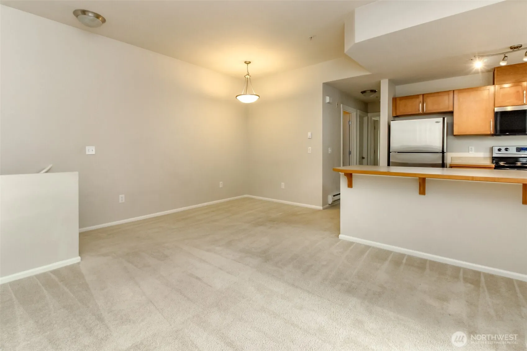 Beautiful and spacious 2-bedroom, 1-bath condo featuring an open floor plan and comfortable living spaces. The kitchen offers stainless steel appliances and great functionality, while large windows bring in natural light throughout. Enjoy your own private deck, perfect for relaxing. This home includes a private garage plus additional parking in front, providing convenience for a second vehicle. Entry is on the main level with living areas thoughtfully arranged above. Roof was replaced in 2025. Located in a quiet, well-maintained community with easy access to I-5, I-405, and Hwy 167. Move-in ready and ideal for both homeowners and investors.