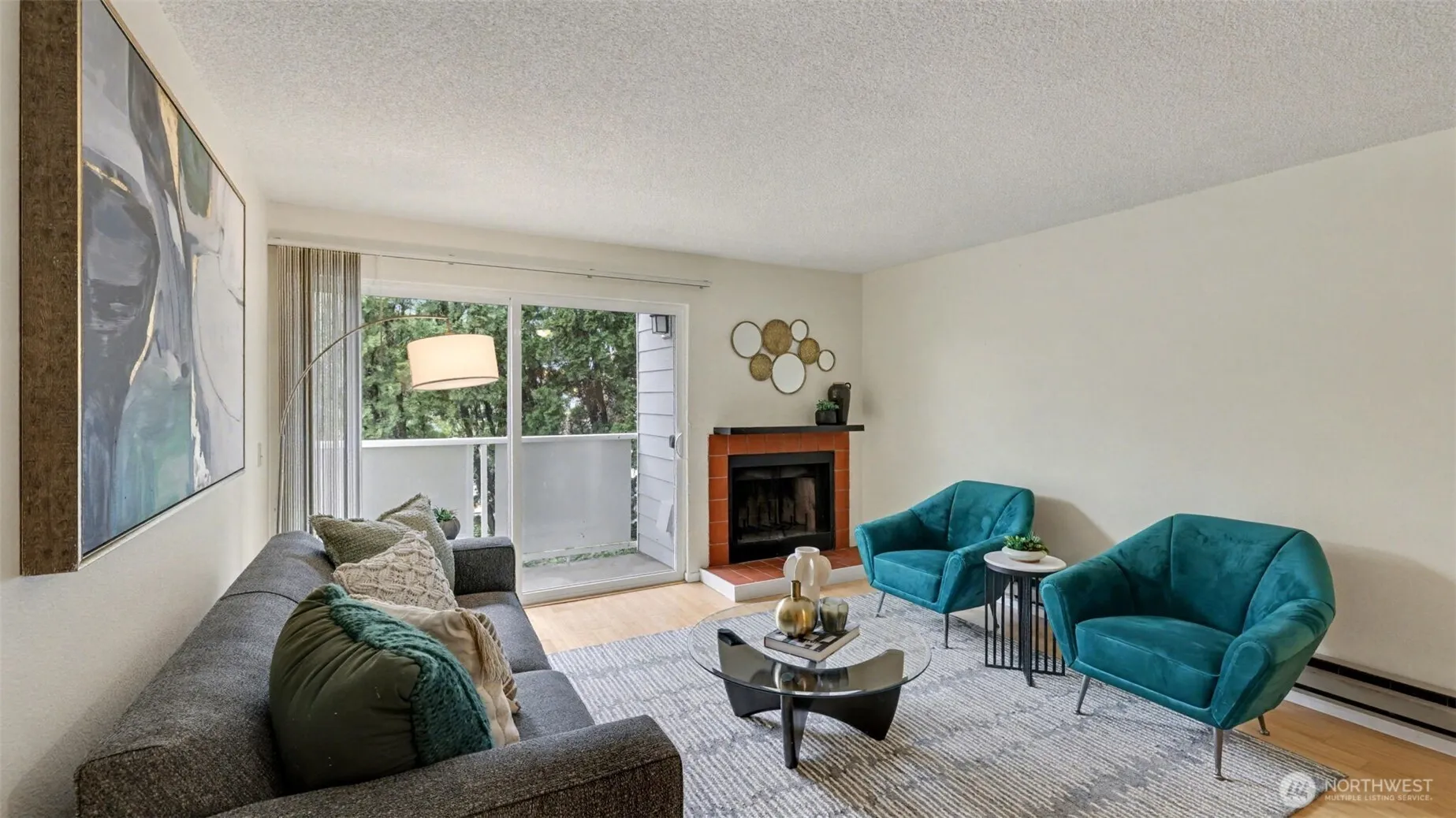 Welcome to Highland Terrace in Maple Leaf – the perfect combination of quaint neighborhood charm and urban conveniences. End-unit townhome-style condominium with an exceptional floorplan that enters to an open living area with cozy wood burning fireplace and balcony. Full size dining area plus a breakfast bar off of the kitchen with ample cabinet and counter space. The main floor is completed with a full bath and spacious bedroom with large closet space. The primary suite spans the entire top floor providing a true retreat and includes an attached full bath. Dedicated parking and secured storage unit. Steps from shopping, restaurants, and parks, minutes to Northgate, plus easy access to commuter routes and light rail.