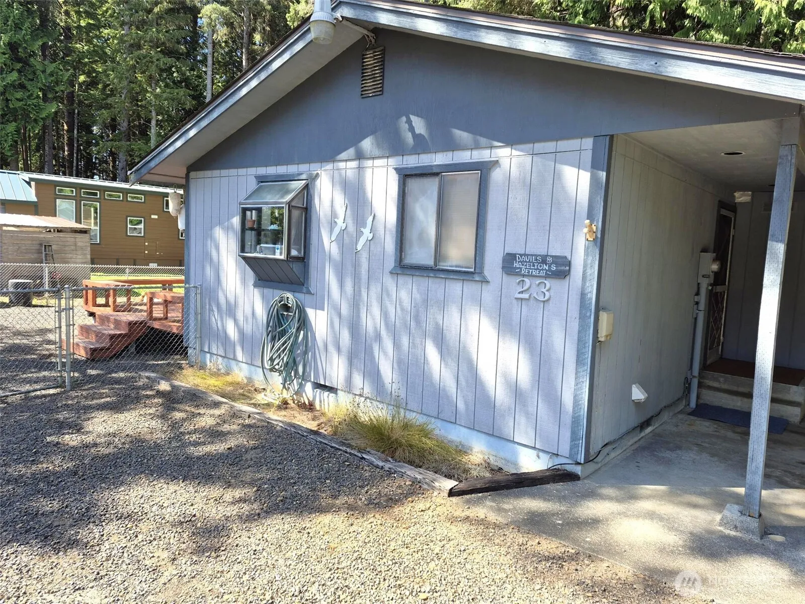 Amazing Location – Secure & Private Woodland Retreat, Nestled in a serene wooded wonderland, this charming and functional 1-bedroom cabin offers both space and character. The huge living room is perfect for relaxing or entertaining, while the spacious bedroom easily accommodates multiple sleeping arrangements. A large, character-filled kitchen provides abundant storage, and the full bathroom includes a washer and dryer for convenience. Enjoy outdoor living with a partially fenced yard, expansive deck, and cozy firepit. A covered carport offers ample parking, all set in a quiet and secure location—your peaceful escape in nature. Turnkey everything stays!