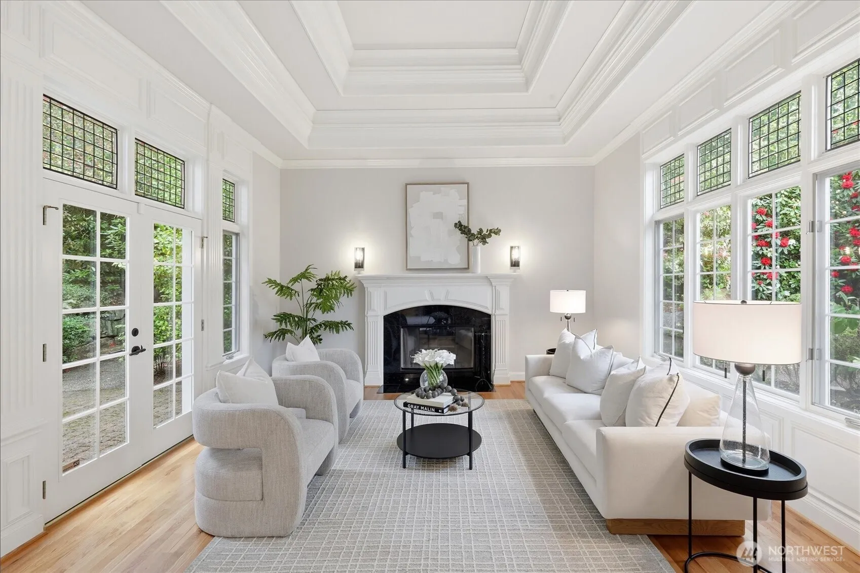 Gracefully set in the coveted Canter Green enclave of Bridle Trails, this beautifully curated home offers refined elegance, modern comfort, and serene privacy on a lush greenbelt lot. A grand entry with vaulted ceilings opens to formal living and dining spaces, a spacious family room, bonus retreat, and a sophisticated office/den with built-ins. The chef’s kitchen is a true centerpiece, featuring quartz countertops, an extended island, new cooktop with downdraft, rich millwork, and hardwood floors throughout. Upstairs, the luxurious primary suite offers a spa-like bath with soaking tub and walk-in closet, complemented by a media room, second en-suite bedroom, and two additional bedrooms. Extensively updated with fresh interior paint on walls, trim, doors, and cabinetry, new carpet, designer lighting, Venetian plaster accents, and a new water heater. Additional highlights include central A/C, an epoxy-finished 3-car garage, professional landscaping, and two private patios. Pre-inspected and just minutes to Microsoft, Google, the Spring District, light rail, Bellevue schools, SR-520, and Bridle Trails Park.