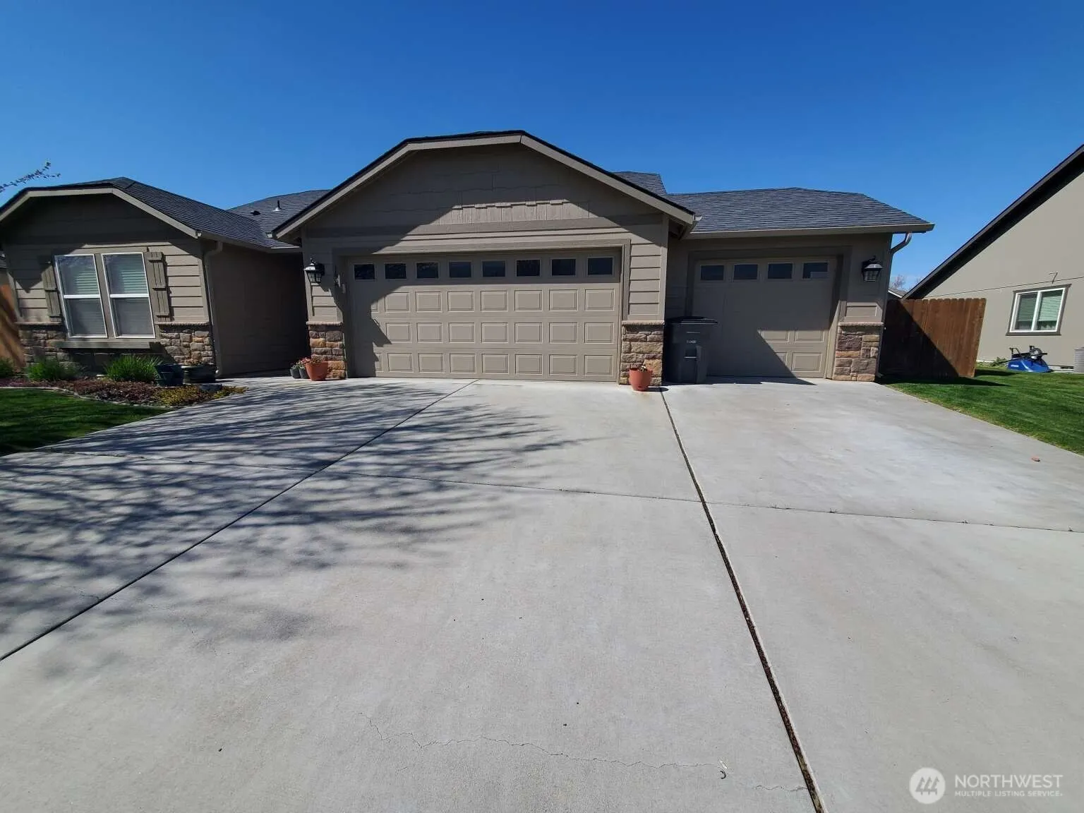 Lovely 3 bedroom, 2 bath rambler with 3 car attached garage. Master bedroom has vaulted ceilings, 2 walk in closets and private toilet room. Fully fenced and landscaped backyard with in ground auto sprinklers. Covered back patio with recessed lighting. Appliances are stainless steel, washer and dryer negotiable, and sale includes a garage fridge as well.