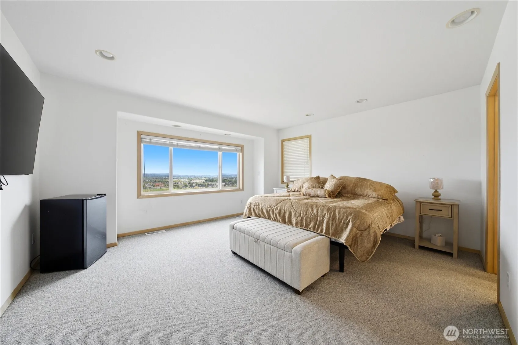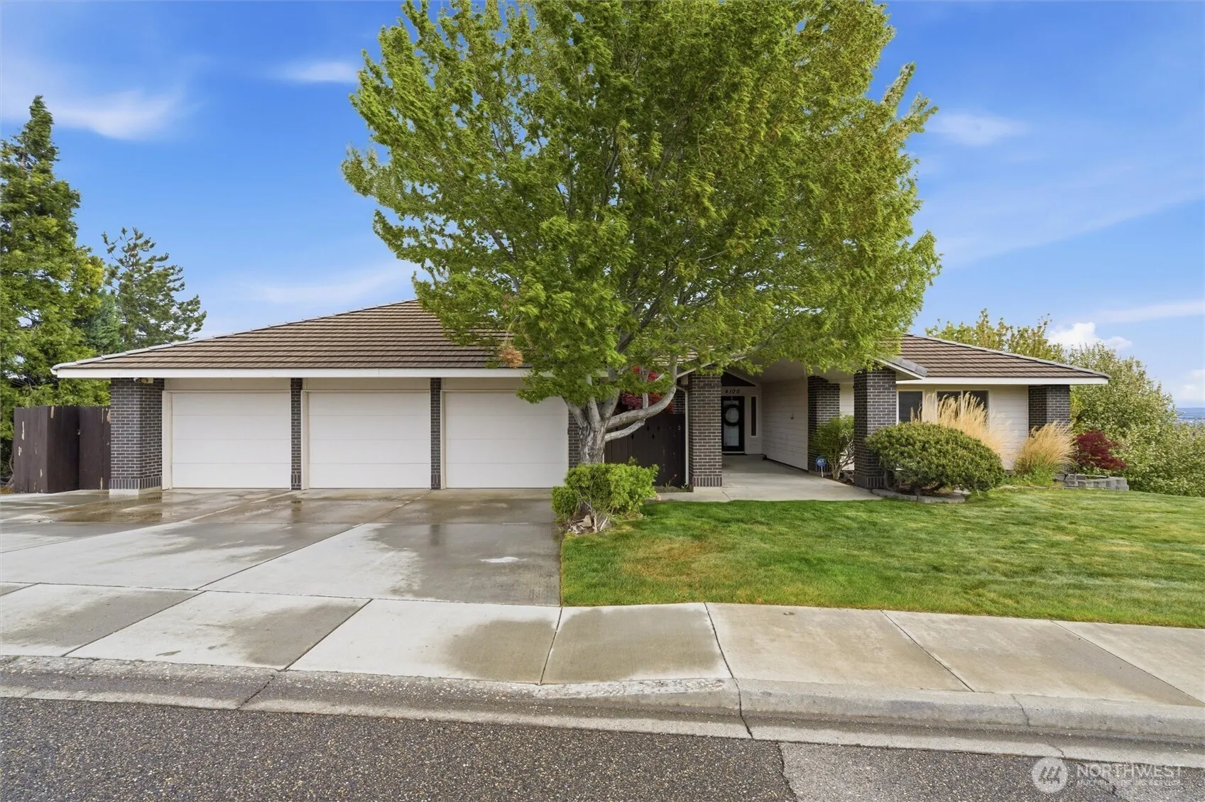 Welcome to Canyon Lakes living at its finest! Situated on a sprawling half-acre lot, this impressive 4,250 sq ft home offers breathtaking panoramic views of the golf course and city skyline—views you truly have to experience in person.Designed with both comfort and functionality in mind, this spacious residence features 5 bedrooms, 3 bathrooms, and a versatile two-level layout perfect for everyday living and entertaining. The main level showcases a well-thought-out floor plan with formal living and dining areas, a private office/den, and a warm, inviting great room that flows seamlessly into the expansive kitchen—complete with abundant countertop space and natural light pouring in from every angle.Convenience meets luxury with the primary suite and laundry room located on the main level. Downstairs, you’ll find a large family room, additional bedrooms, and plenty of space for guests, hobbies, or multi-generational living. Need storage? This home delivers with multiple storage areas throughout.Step outside and enjoy everything this property has to offer—from a private basketball court to a beautifully retained backyard designed for entertaining and soaking in the Tri-Cities sunshine. And for your golf cart toy, don’t miss the oversized lower-level golf cart garage.This move-in ready home offers the space, views, and flexibility to create your dream lifestyle in one of Kennewick’s most desirable communities.