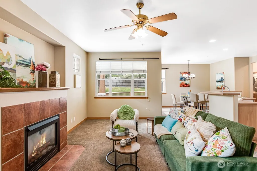 Beautiful single level Craftsman home located within 55+ senior community has no stairs. Condo fees cover all exterior maintenance (roof, windows, exterior paint, landscaping and snow removal, including personal driveway and sidewalk). Built on a premium lot with long driveway for extra parking. Back patio opens to pine-treed community common space. Welcoming front porch and foyer provides access to den/office. Great room with volume ceiling and gas fireplace. Functional kitchen with eating bar, walk-in pantry and abundant cabinets. Smooth-top range, built-in microwave, dishwasher, trash compactor and refrigerator included. From dining area gain access to private patio. Primary suite with plenty of natural light and transom windows, large shower, double sinks and walk-in closet. Second bedroom has window seat and access to second full bath and linen. Laundry room with sink accesses oversized garage with storage/shop area. Enjoy the lifestyle!