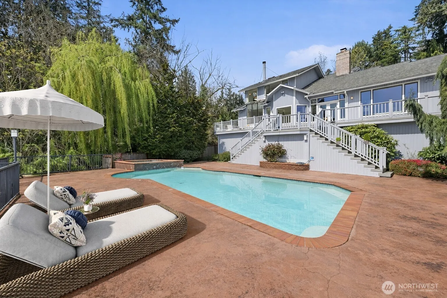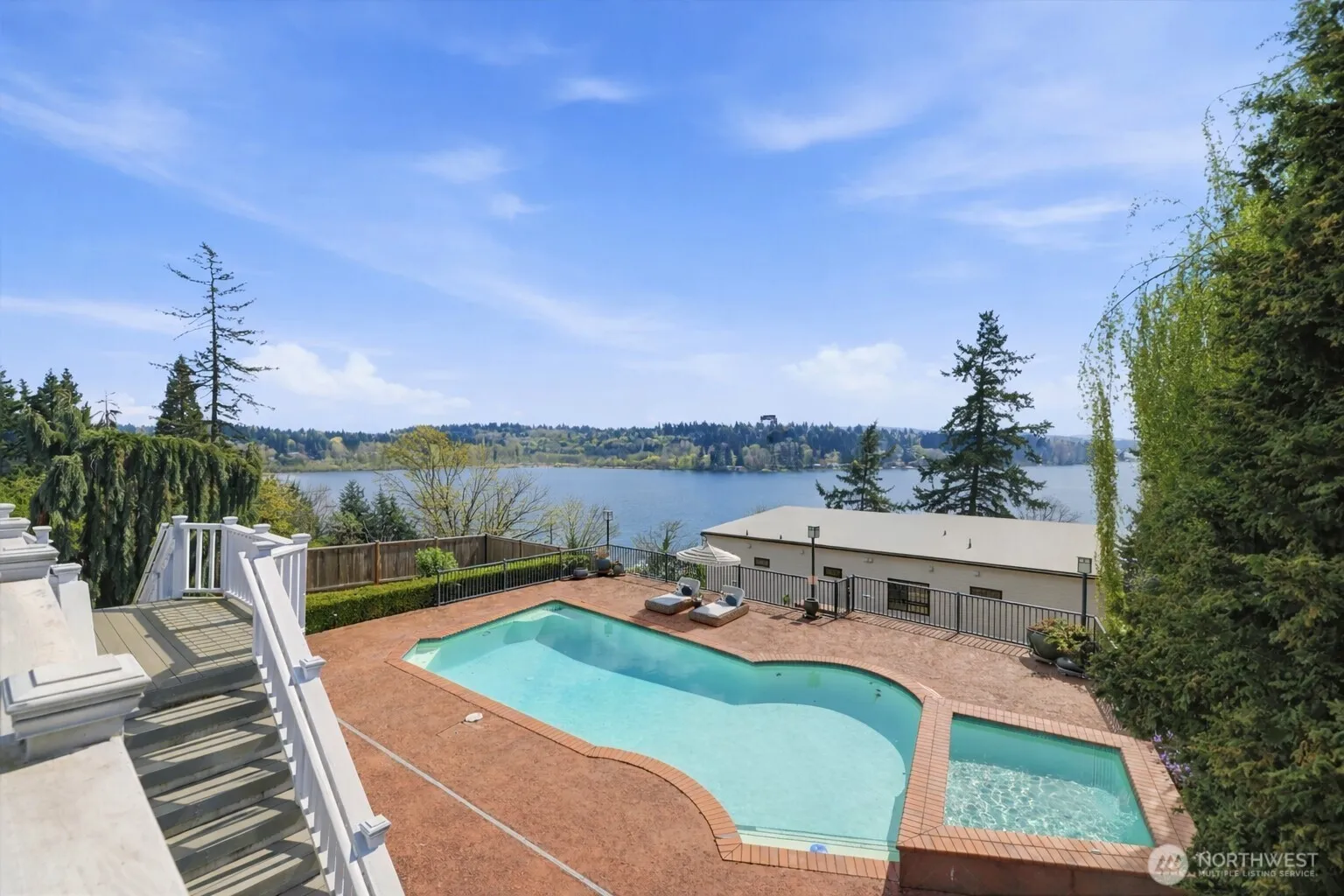 Perched above Lake Washington, this custom-built home blends refined design with sweeping views of Lake Washington and Mount Rainier. Built in 1990 and thoughtfully designed and customized by the original owner, the home showcases a unique sense of style and a truly elevated living experience. Inside, soaring ceilings and expansive windows highlight the stunning natural setting, filling the home with light and creating a seamless connection to the outdoors. Entertain or unwind on the spacious deck with direct access to your private pool—perfect for relaxing or hosting year-round. Major updates provide modern comfort, including fresh interior paint and brand-new carpet. The beautifully updated primary bathroom adds a touch of luxury, while a newer hot water tank and air conditioning enhance everyday efficiency. A spacious three-car garage offers ample storage and convenience, and the home is wired for a generator and includes the generator for added peace of mind. Ideally located just minutes from Juanita Village, waterfront parks, and within the highly sought-after Lake Washington School District, with easy access to I-405, this home offers seamless connectivity to Bellevue, Redmond, and Seattle. This is more than a home—it’s a lifestyle.