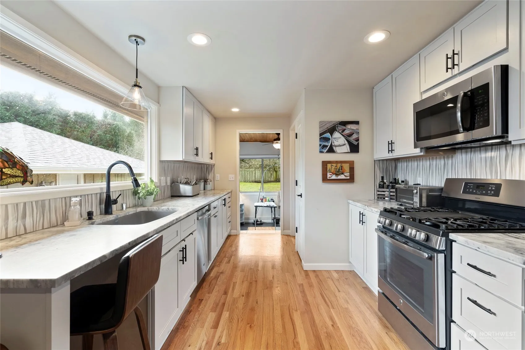 Ideally located in the heart of town, this stylish 3-bed, 2.5-bath home is convenient to all Gig Harbor amenities. Re-imagined & remodeled top to bottom in 2017, the result is a thoughtful floor plan, bathed in natural light & featuring many multi-use spaces. The main level is highlighted by a modern kitchen; cozy great room; primary suite w/luxurious bathroom, walk-in closet, flex-room; and a studio/office. The lower level offers 2 bedrooms, full bath, family room. A separate exterior entrance allows this space to flex as an in-law suite, a Short Term Rental, even a professional office. The 1/3 acre, level, fenced lot provides ample room for gardening & play, with a Gazebo deck & 2 private patios. 2-car garage & RV parking.