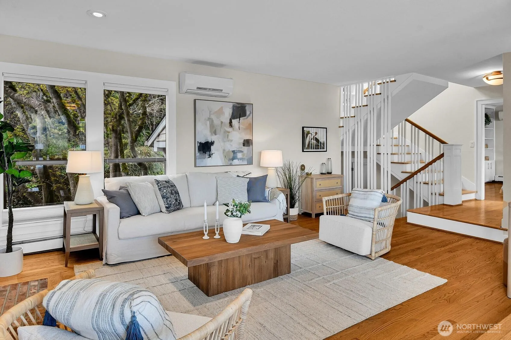 When you dream of home, you imagine this! A luminous waterfront home celebrating unobstructed Lake Washington and mountain views and offering the warmth and refuge of a lakeside retreat. With 3 levels of balconies, decks and patios, this gorgeous 3,300 sf. home melds interior and exterior spaces. You won’t find a double-height vestibule or glitzy finishes, here. What you will find are gas and wood-burning fireplaces, elegant built-ins and honey oak floors…a home filled with character and soul. The interior absolutely glows with natural light. And for those few rooms without a view, a skylight floods the space with light from above. The primary ensuite bedroom enjoys a private deck, gas fireplace and a walk-in closet. Slip into Lake Washington for a refreshing swim and bathe in the sunshine on your private dock. With 50′ of waterfront, this 5 bed, 4 bath property also includes a boat lift, boathouse and an attached two-car garage. And for dog walkers or runners, the Burke Gilman Trail is just steps away. Let this be your first summer of spectacular lake living!