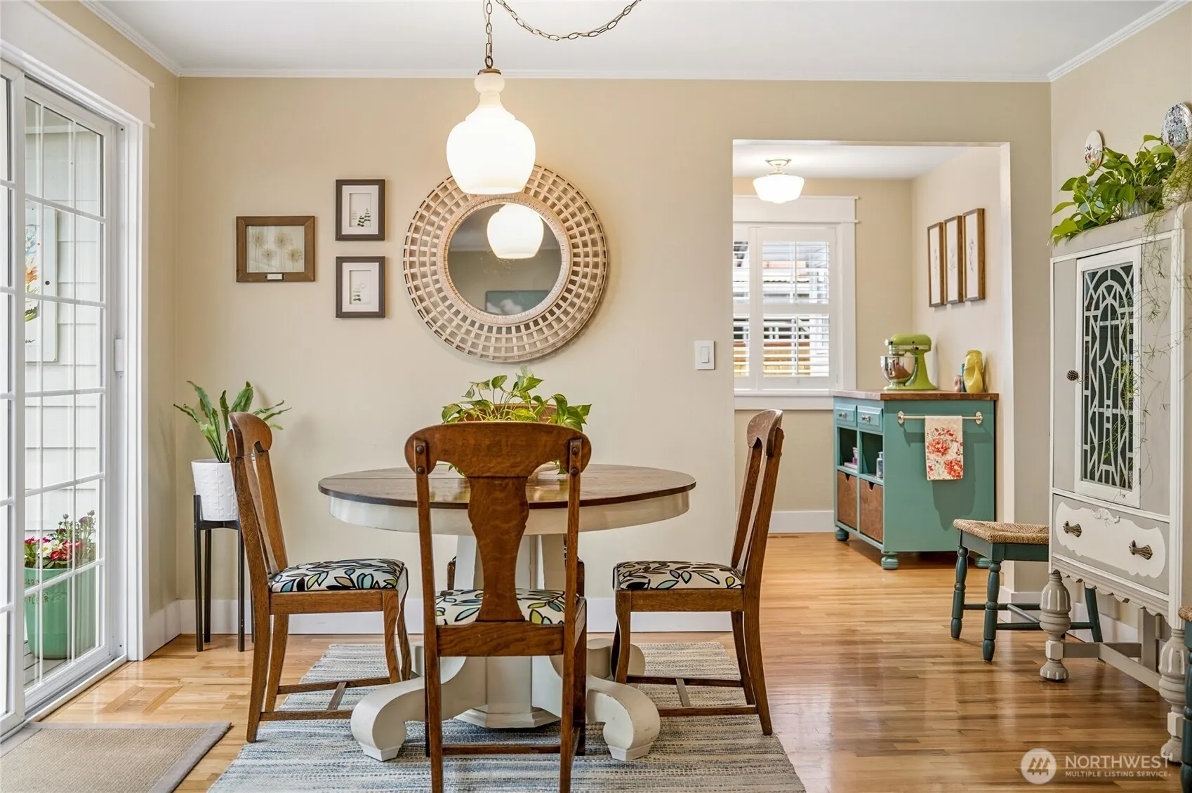 Some homes are updated. This one was DESIGNED. Extensively remodeled with intention and craftsmanship, this stunning one-story rambler stands apart. Refinished hardwood floors flow throughout—no carpet—creating warmth and continuity. The living room features a wood-burning fireplace with insert, flanked by full-height windows & built-in benches with storage. The kitchen showcases custom cabinetry from International Kitchens in Bellevue with dovetail construction and pullouts. Lower cabinets are finished in a custom lagoon teal created specifically for these owners—so beautiful it was later adopted into the cabinet company’s permanent collection—paired with crisp white uppers and a skylight overhead. A 36″ 5-burner Verona range from Italy, commercial-style hood & stainless appliances complete the space. Both bedrooms are impressively spacious, offering comfort & flexibility, while the primary bedroom includes custom closet organizers. The beautifully reimagined main bath—taken down to the studs—feels like a boutique retreat, featuring mosaic tile floors, a double vanity with marble countertop & an expansive walk-in shower for everyday luxury. Enjoy year-round living under the exceptional 24×18 covered patio with blooming wisteria and privacy screening. Beautifully landscaped front and back with seasonal color, including winter camellia blooms. Major updates include heat pump (AC), furnace, tankless water heater, updated windows/doors—and BRAND NEW roof installed February 2026.