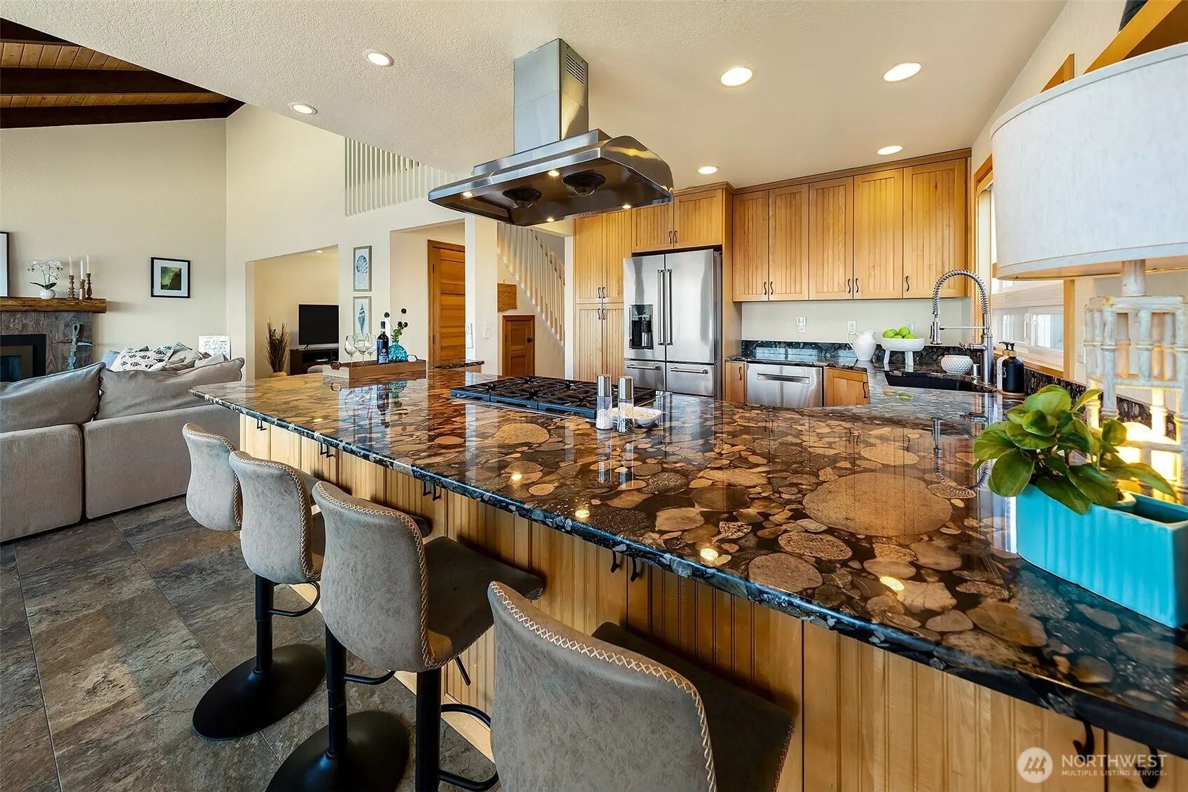 Welcome to the perfect Whidbey Island getaway! Perched along the shores of Columbia Beach, this beautifully remodeled 2-bedroom retreat offers the perfect blend of comfort, style and breathtaking waterfront living. Thoughtfully updated with a modern eye, the home features a light-filled interior, warm wood accents and expansive windows that frame sweeping views of Puget Sound and the Cascade Mountains. The striking open-concept kitchen is complete with high quality finishes, stainless appliances and seamless flow into the dining and living spaces that’s ideal for everyday living or hosting with a view. The inviting living room, anchored by a cozy fireplace and vaulted wood-beamed ceilings, creates a serene space to relax while watching the ever-changing shoreline. Full bath, half bath and an office complete the main floor. Upstairs find an impressive primary ensuite with 5-piece bath, walk-in closet and private deck overlooking the Sound. Step outside to a fully fenced yard, offering privacy and room to unwind, garden or entertain. A covered carport plus a detached two car garage provides storage and security. A detached studio retreat provides a flexible bonus space that’s perfect for a home office, creative studio or place to relax after a long stroll on beach!