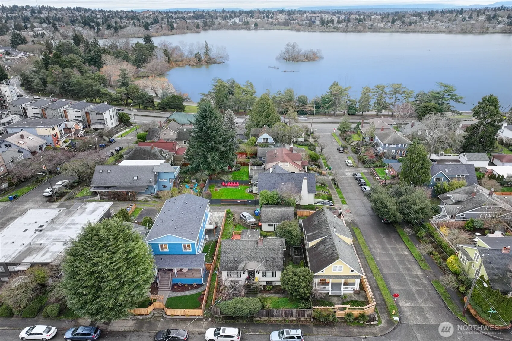 Location cannot be beat- Only 1 block to Greenlake! Reimagined Craftsman Home, thoughtfully updated to meet today’s discerning tastes. This fully permitted, legal duplex features a 4 bed/3.25 bath main home and a private-entry ADU offering two bedrooms and one full bath—perfect for multi-generational living or added rental income you can leverage for the upcoming FIFA World Cup. Inside the main home, 9+ ft ceilings & western exposure create a bright, open feel. The chef-inspired kitchen features quartz countertops & mostly WiFi-enabled stainless steel appliances, blending style with modern convenience. The serene primary suite includes a walk-in closet & a private deck, ideal for cozy evenings with lake views, along with heated flooring in the primary bath for added comfort. Private-entry ADU offers flexibility for guests, extended living, or income potential. Intentional outdoor living with 480 sq ft deck + 120 sq ft of storage beneath. Alley access provides parking for 4-5 vehicles. The full renovation showcases new electrical, HVAC, plumbing, roofing, framing & siding, along with efficient mini-split heating/cooling rated for sub-zero weather, dedicated dog washing station for fur babies, Milgard windows, two electric meters, hybrid water heaters for each unit & electric car charger readiness. Walking distance to Green Lake amenities, parks, shops, restaurants and more. Don’t miss this incredible home.