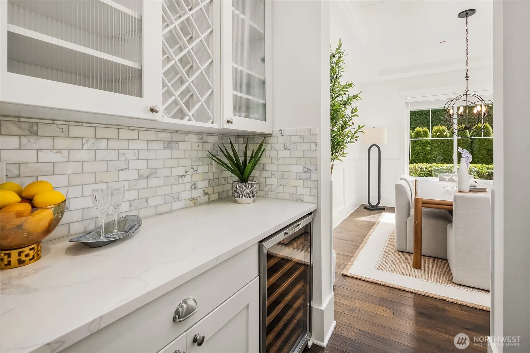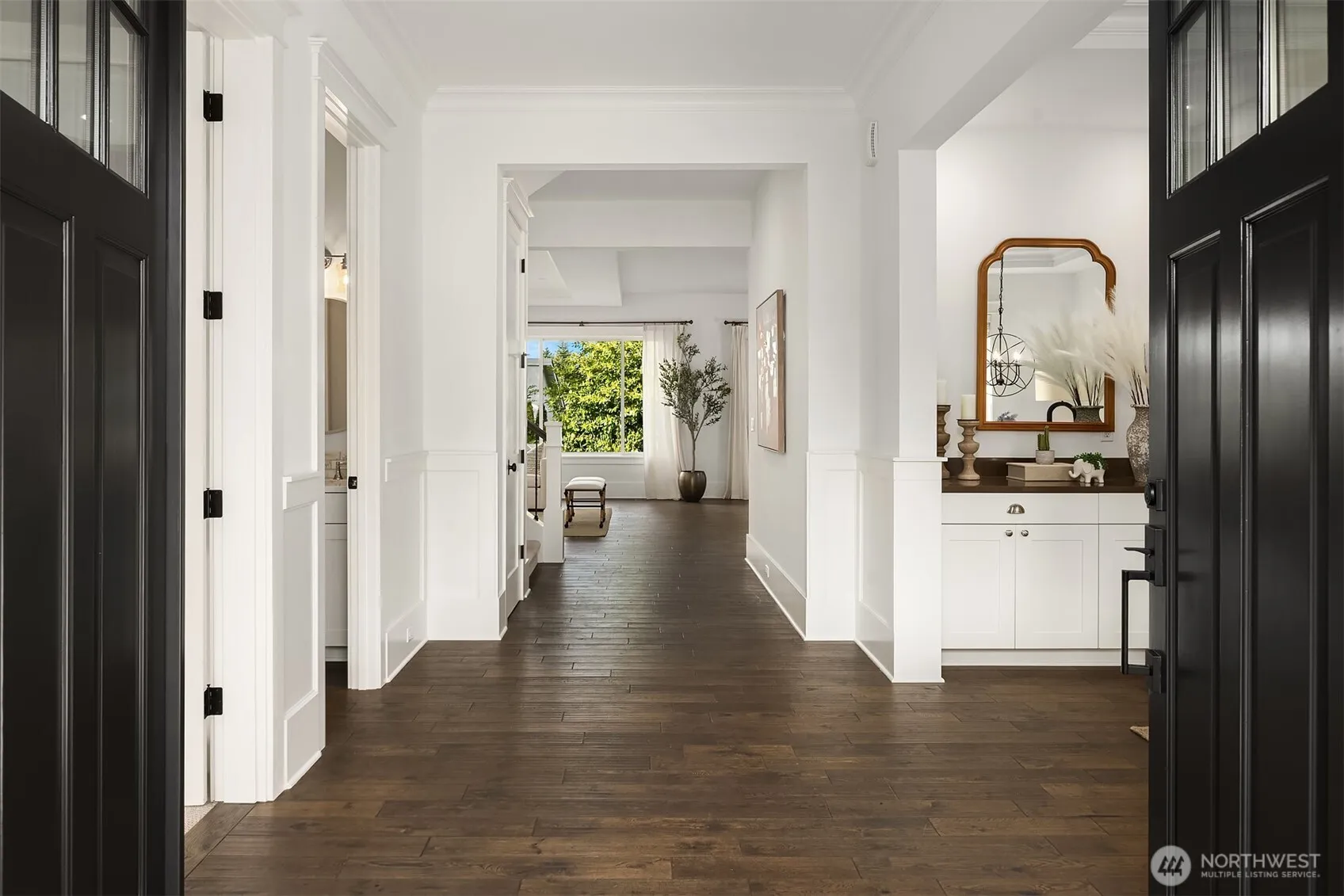 Tucked among multi-million-dollar homes, this timeless resale by award-winning builder American Classic Homes presents nearly 5,000 sq. ft. of thoughtfully curated living space. Exquisite craftsmanship is evident throughout, with tall doors, substantial custom millwork, and grand-scale baseboards that create a polished transition from rich hardwood floors to crisp white walls. Embodying quiet luxury, this kitchen showcases a full-wall marble backsplash with an artisan-inlaid focal point and elegant floor-to-ceiling cabinetry. The professional-grade Thermador appliance package anchors the room, complemented by a walk-in pantry offering outstanding storage and organization. The home features a desirable main-level suite—ideal for multi-generational living. With several bedrooms and versatile spaces, the floor plan easily supports a large household, dual home offices, or evolving living needs, enhanced by countless custom built-ins that add both charm and functionality. A true lifestyle chameleon, the oversized bonus room perfectly adapts to your needs—be it a cozy media den, playroom, yoga studio, or a welcoming spot for overnight guests. A tranquil sanctuary, the backyard features a manicured lawn framed by lush privacy hedging. The covered paver patio serves as a fluid extension of the home, perfect for year-round entertaiment. Whole-house Hunter Douglas blinds and a 3-car garage. Enjoy Eastside lifestyle with top Bellevue schools, just steps from QFC and mins from 520.