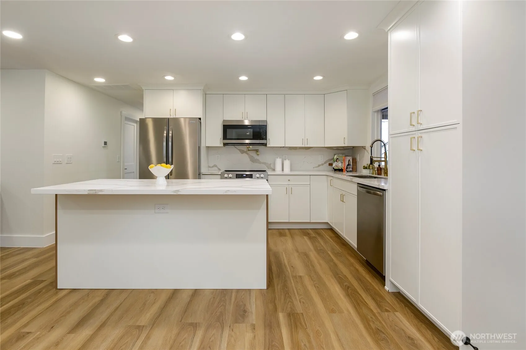 Thoughtfully remodeled rambler in Bothell’s desirable Thrasher’s Corner! This move-in-ready home has been completely reimagined with careful attention to detail and quality upgrades throughout. The home now offers 4 bedrooms and a comfortable, efficient layout designed for easy everyday living. The beautifully updated smart kitchen connects naturally with the dining and living areas, while spa-inspired bathrooms feature elegant finishes and multi-head shower systems. Extensive improvements including new roof, new water piping and new HVAC provide both style and peace of mind. Step outside to a gorgeous entertainment deck with hot tub, perfect for relaxing evenings or gathering with friends. The tiered backyard creates multiple outdoor areas to enjoy, and the private, detached, 94-sqft studio provides an ideal work-from-home setup or creative studio. Enjoy convenient single-level living just minutes from I-405, I-5, UW Bothell, Northshore schools, parks, dining and shopping. A home where the quality of the remodel and thoughtful details truly shine in person.