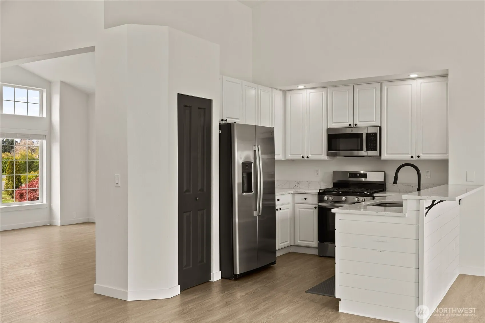 Welcome Home! This freshly remodeled rambler sits on an expansive 14,500 SF lot and offers a rare combination of space, functionality, and modern updates—including a 3-car garage and RV parking. Step inside to discover brand-new finishes throughout, including luxury LVP flooring, updated trim, quartz countertops, new cabinetry, and stainless steel appliances. The open-concept layout is complemented by vaulted ceilings, creating a bright and inviting living space perfect for everyday living and entertaining. Just off the kitchen and living area, enjoy seamless indoor-outdoor living with a large concrete patio—ideal for hosting gatherings or relaxing in your private backyard. The spacious primary suite features double sinks and a walk-in closet, while two additional guest bedrooms offer comfort and flexibility. A formal living room adds an extra touch of space, filled with natural light. Additional highlights include a full sprinkler system in both the front and backyard, ample driveway parking, and generous garage space. Conveniently located just minutes from downtown Sumner with quick access to Hwy 410 and 167, making commuting a breeze.