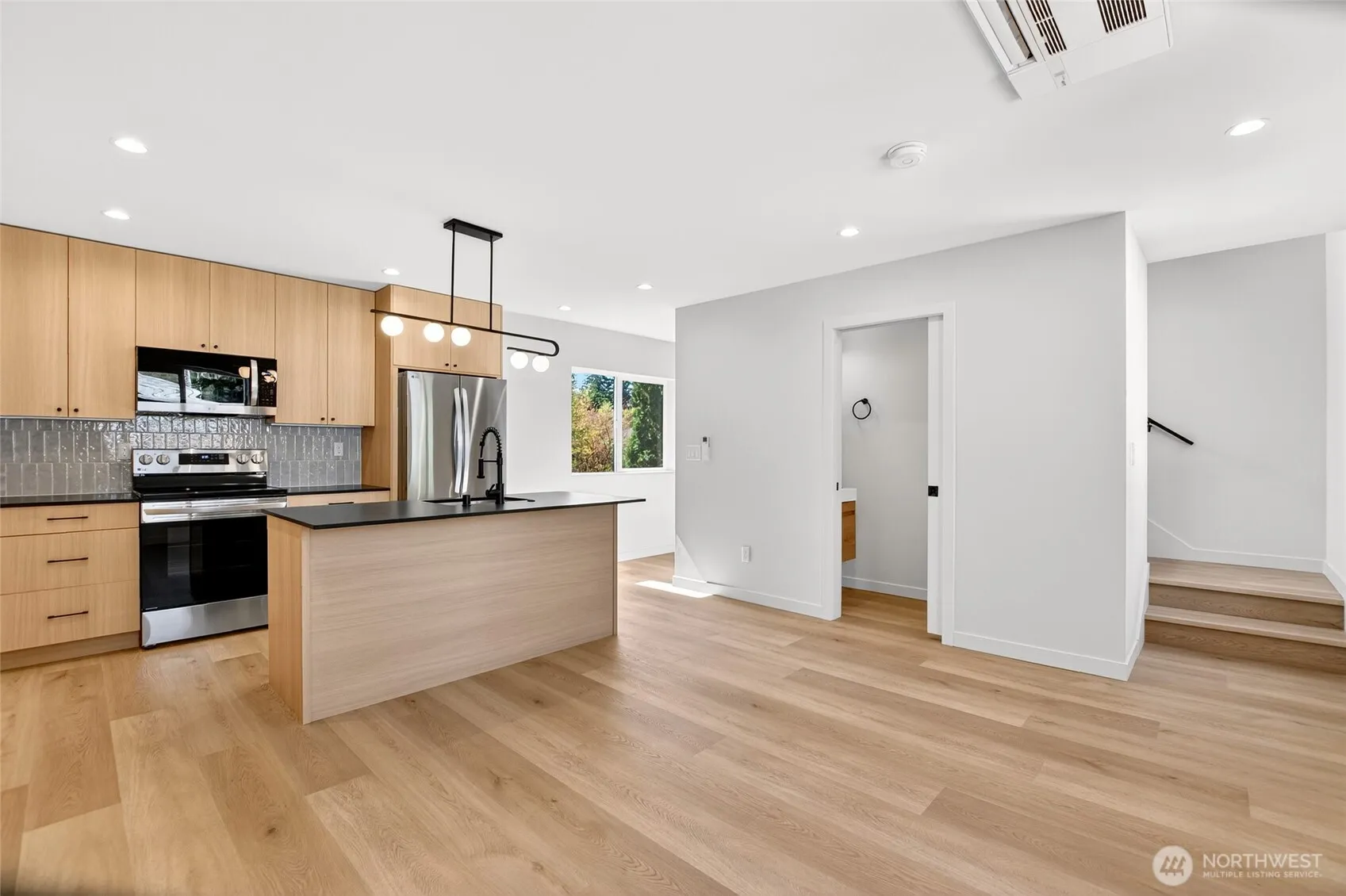 A standout, newly built 3-bedroom AADU offering modern living and convenience in Haller Lake. This rare home perfectly blends space and functionality. The open-concept 2nd level is ideal for entertaining, featuring bright areas, contemporary finishes, and a well-designed kitchen with sleek cabinetry, an island, and stainless steel appliances. Two bedrooms upstairs and a third bedroom on the ground floor suit guests, an office, and hobbies. Enjoy the unique benefit of a private yard for gardening, pets, or outdoor hangouts. A dedicated garage provides convenience and storage—a very uncommon perk for an AADU here! This home offers comfort, privacy, and accessibility.