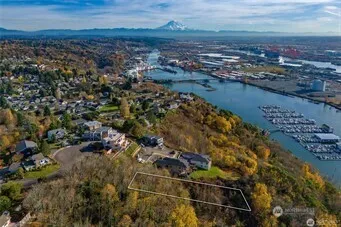 Perched in the gated community of Rainier Harbor in Tacoma, this exceptional building site at 1416 Browns Pt. Blvd offers a rare opportunity to create a custom home surrounded by natural beauty and panoramic water views! The property captures sweeping vistas of Commencement Bay, Puget Sound and stunning sunsets that transform the sky each evening. The lot features a prime elevated position that maximizes the view while still providing a peaceful setting. Surrounded by upscale homes (there are only eight residences in this gated niche) the community reflects pride of ownership and offers a quiet, secure environment just minutes from everyday conveniences. From this location, you can enjoy the serenity of coastal living while remaining close to shopping, dining and major commuter routes. Whether you envision a modern architectural showpiece or a timeless NW-style retreat, this property provides the perfect canvas. With its breathtaking outlook, desirable gated setting and prime Browns Point location, this is a truly special chance to build a dream home in one of Tacoma’s most sought-after view communities. Check out the surveyor’s map with site plan…it just needs your architect to draw your custom plans to proceed. Priced below assessed value!