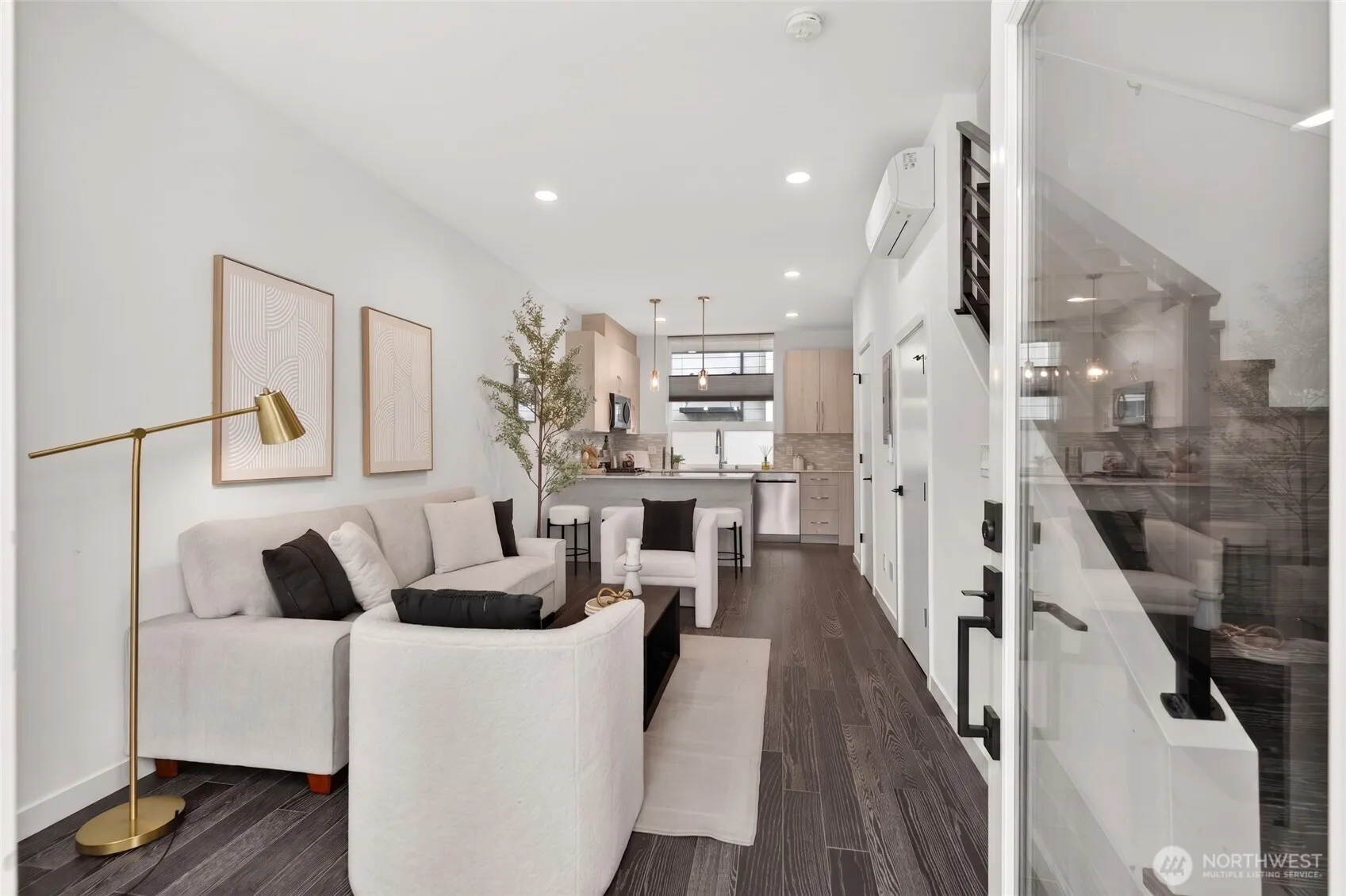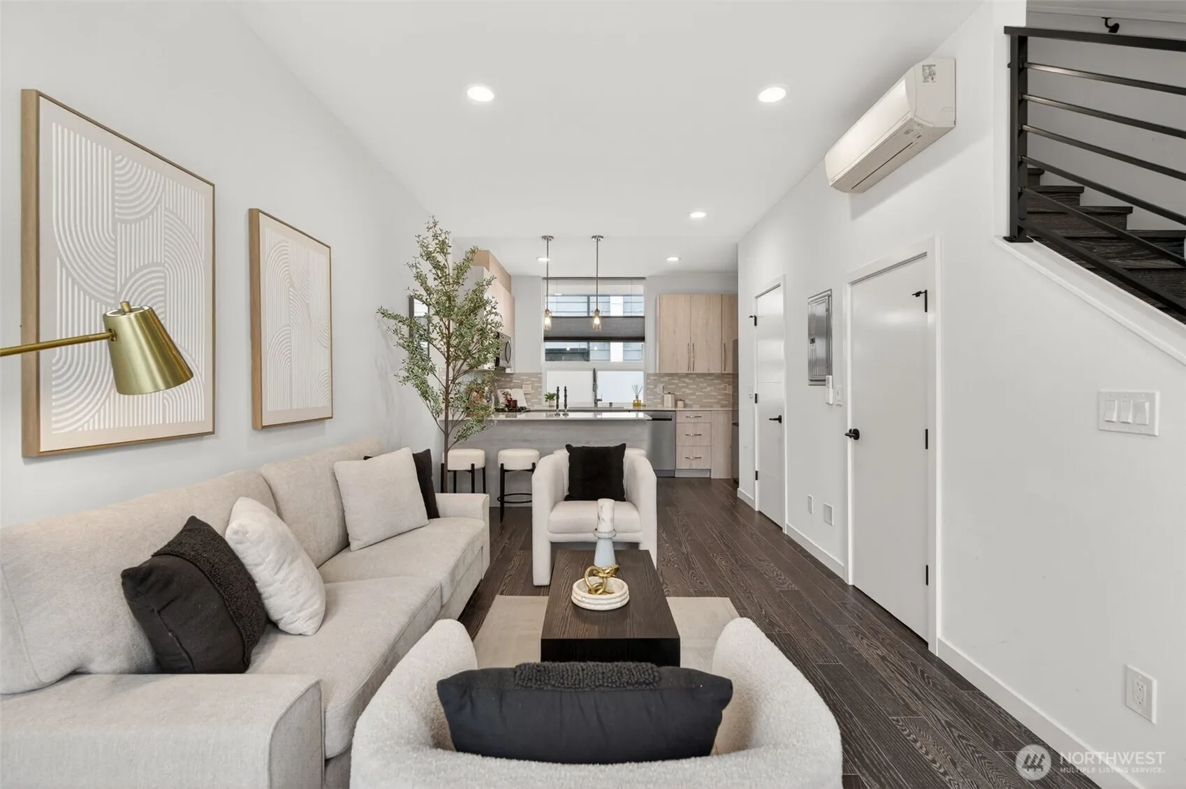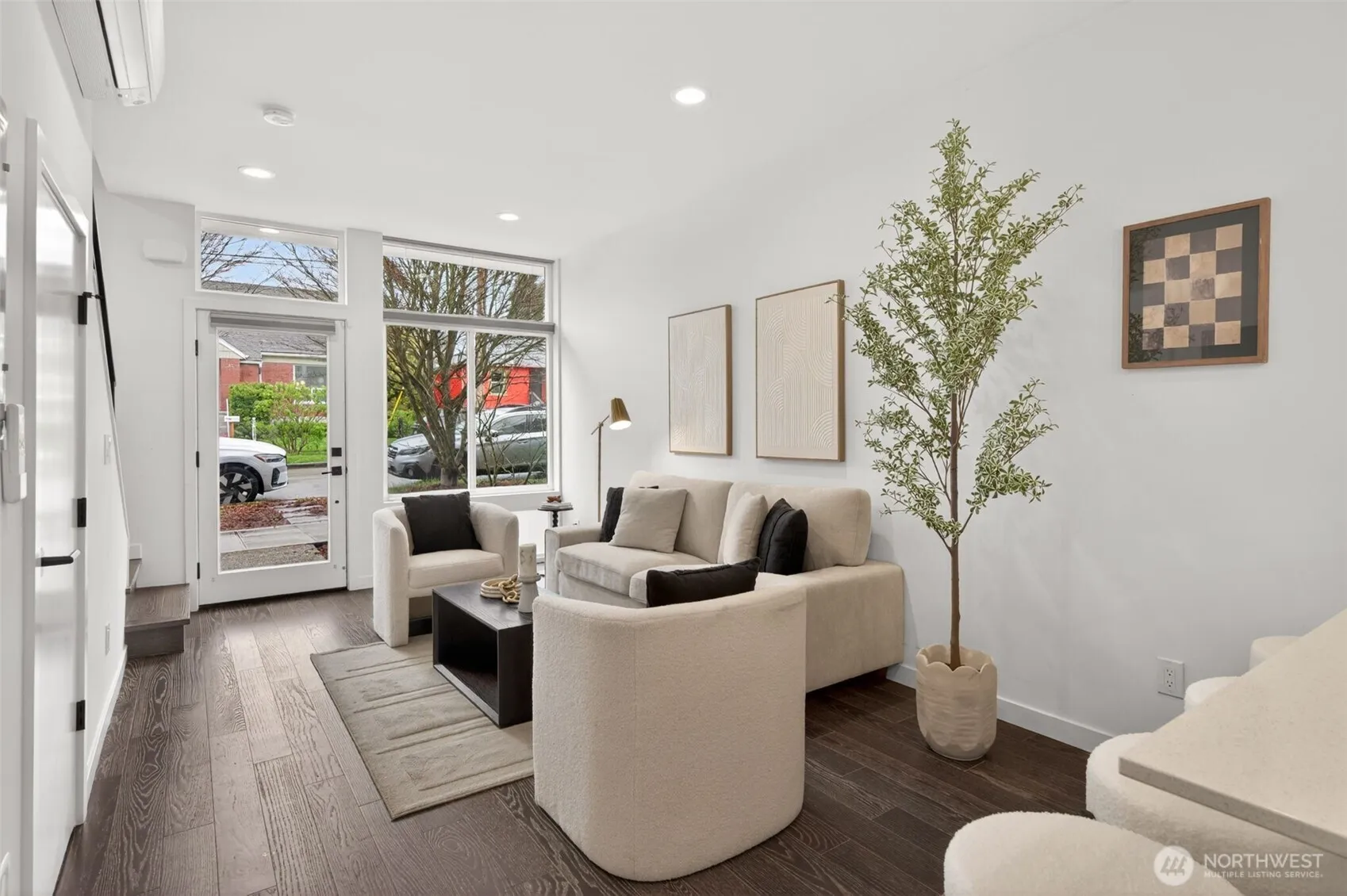 Experience the perfect blend of modern design and urban functionality in this 2021-built Ballard townhome. The light-filled main floor welcomes you with an open-concept living area and a chef’s kitchen featuring an oversized island with breakfast bar seating, gas cooking, and stainless steel appliances. On the second floor, find a spacious guest bedroom, a full bath, and a dedicated den or flex space ideal for a home office, hobby room, library, or quiet retreat. The entire third level serves as a private primary suite with a spa-inspired 3/4 bath and direct access to the home’s crown jewel: an expansive rooftop terrace perfect for entertaining or unwinding while soaking in the Seattle views. Completing the package: a designated off-street, EV charging, parking space and a prime Ballard location just blocks from the restaurants, coffee shops, and boutiques that define the neighborhood’s signature lifestyle. No HOA.