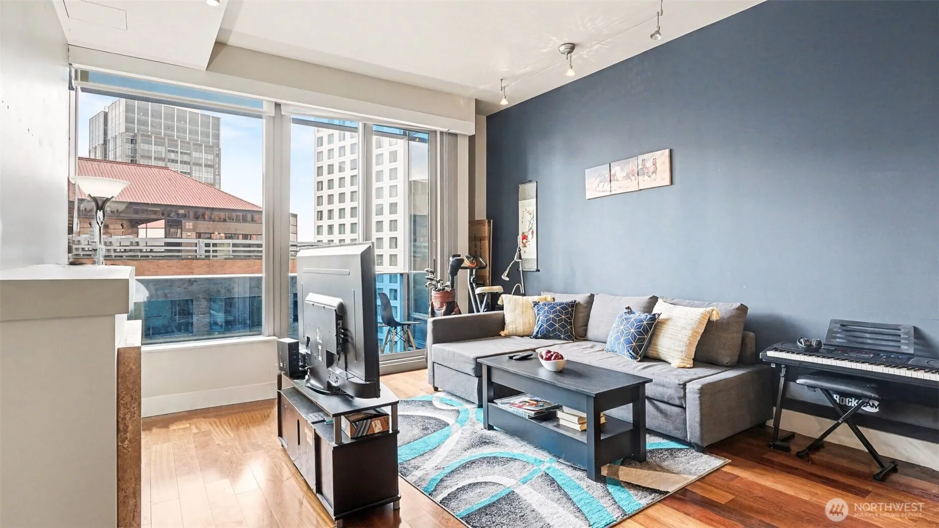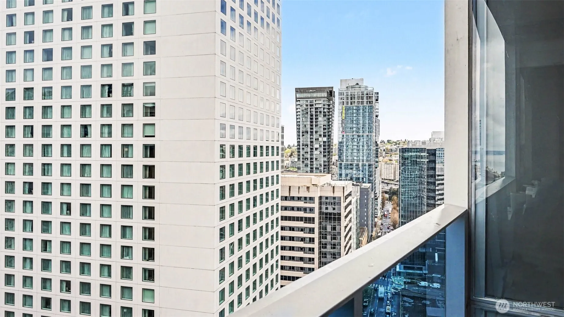 Welcome to luxury living at Olive 8, perched above the Hyatt Hotel in the heart of downtown Seattle. This east-facing home features floor-to-ceiling glass, 10’ ceilings, abundant natural light, and a private balcony with sweeping city and partial water view. The Pedini-designed kitchen includes Italian cabinetry, Italian marble countertops, Liebherr stainless steel refrigerator, and stainless steel Bosch appliances. Modern, luxurious bathroom offers natural stone finishes and dual-vanity sinks. Hardwood flooring throughout and a gas fireplace anchor the living space with warmth and style. The spacious primary suite includes a versatile nook ideal for an office and custom California Closets. Residents enjoy exclusive access to the updated 18th-floor Owner’s Lounge with roof deck, pet retreat, and game tables. Additional amenities include a 65’ indoor saline pool, steam room, sauna, Elaia Spa access, state-of-the-art fitness center with Peloton bikes, and yoga studio with classes. Unbeatable walkability—steps to the Paramount, Convention Center, shopping, dining, and transit. Strong rental demand and a premier location also make it an appealing opportunity for investors seeking long-term value.