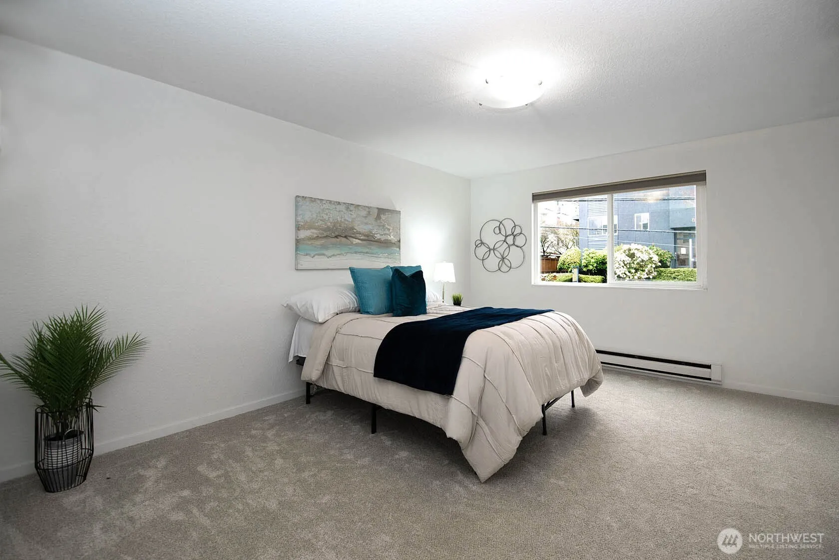In a highly sought-after Greenwood spot, this spacious and well-kept 1-bedroom end unit is close to all the best of Greenwood and North Seattle. Fresh paint and brand-new carpet give it a clean, updated feel, while big windows flood the space with natural light. The oversized bedroom offers plenty of room plus a large 3-door closet. The kitchen features quartz counters, stainless steel appliances, and a stylish backsplash. Community parking is conveniently located at the back, with a private, easy-access entrance. On a major bus line, you’ll have quick access to Downtown, Ballard, Green Lake, Carkeek Park, and charming nearby coffee shops and pubs, with Trader Joe’s and Fred Meyer just a short walk away. This home and community are ready to win your heart!
