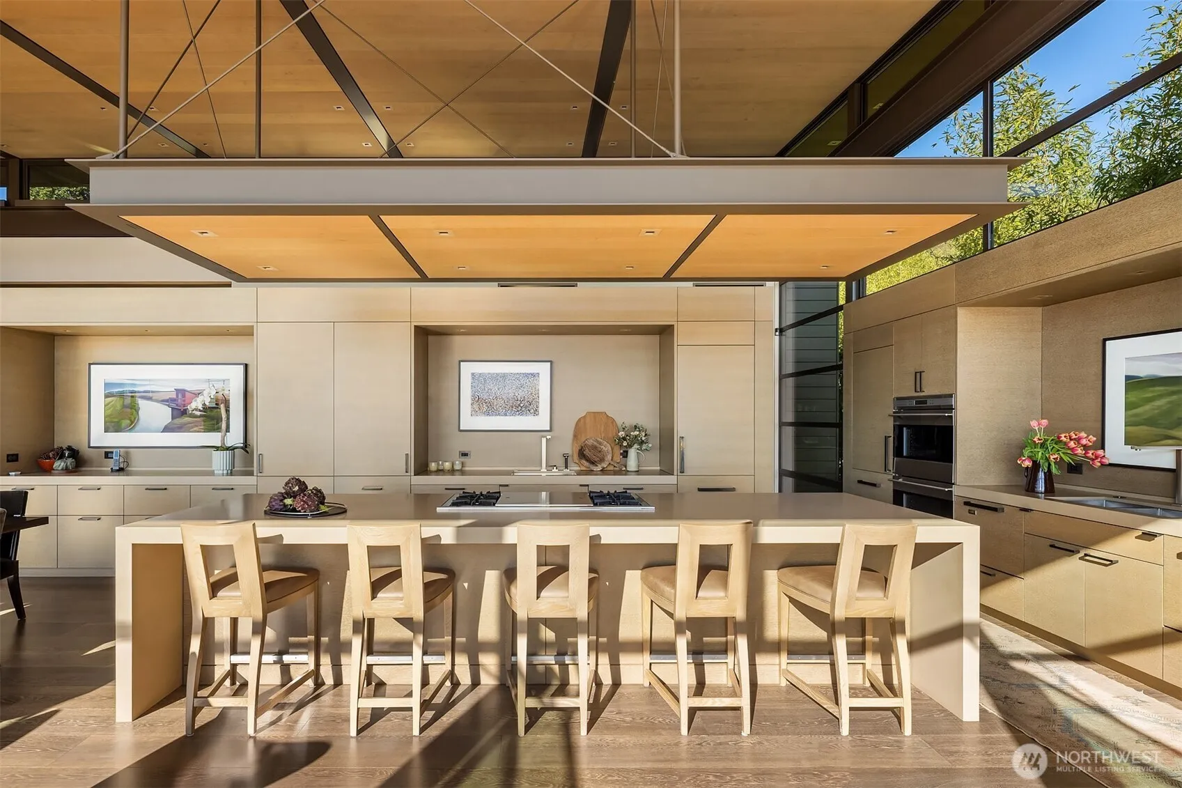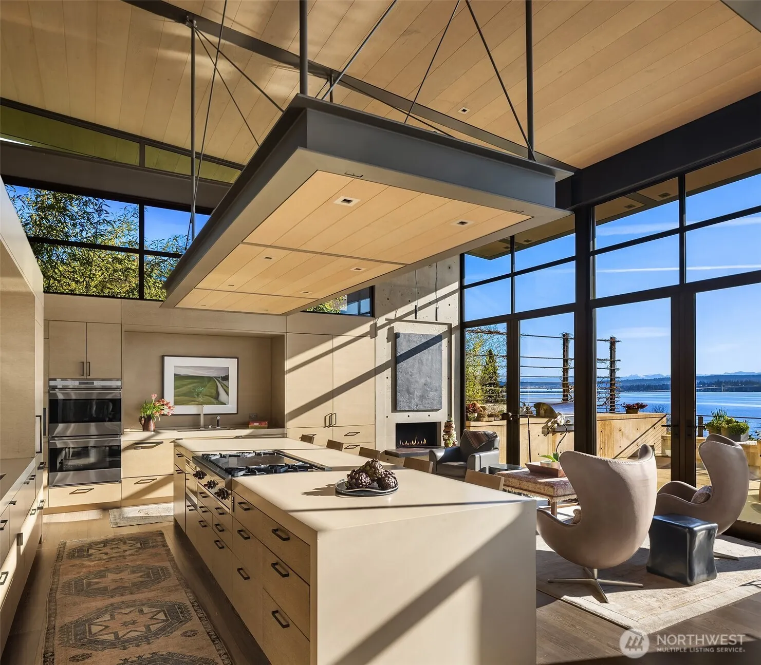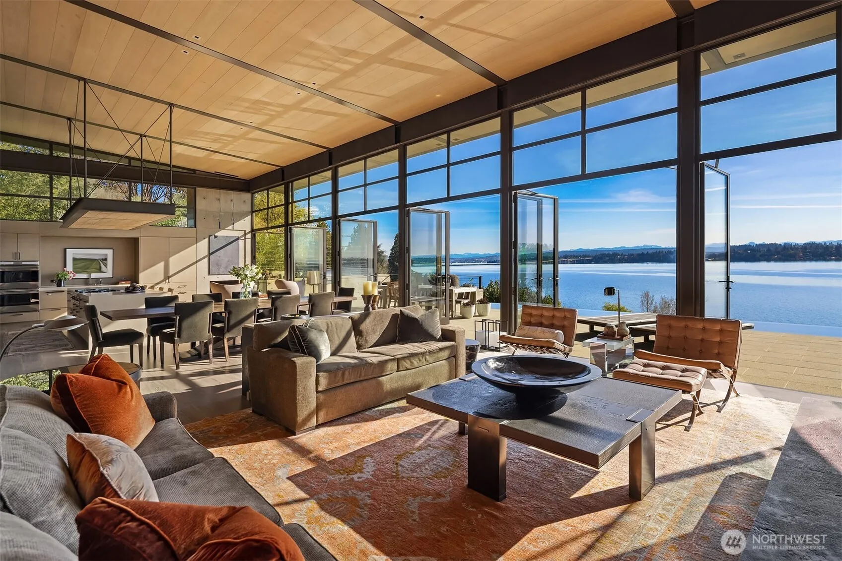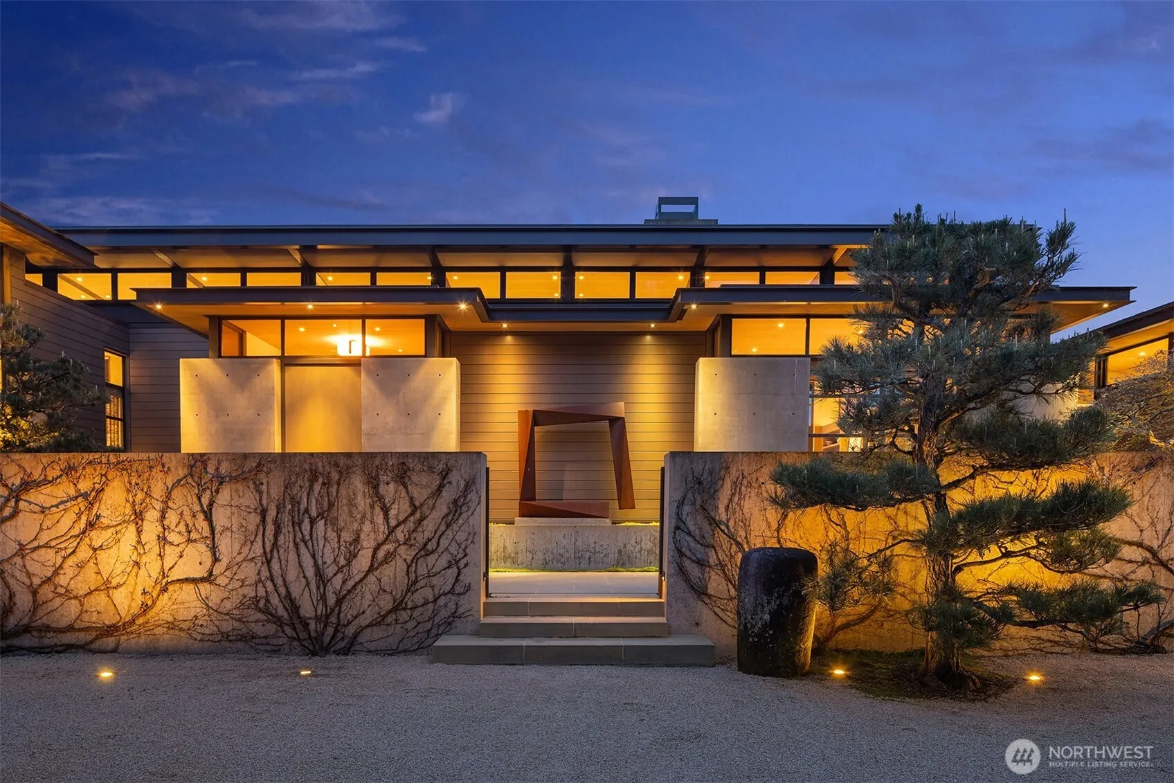 Truly remarkable in every way, this home presents a once in a lifetime opportunity combining exquisite design, stalwart construction, highly desirable floor plan and amenities, and tremendous view location. The 124 ft wide lot affords privacy and panoramic views of Lake Washington, the Cascades, the Bellevue skyline, sunrises and Mount Rainier through the wall of glass and from the infinity reflecting pool terrace. This open concept home is tied together by consistent use of design elements and materials creating a restful, zen-like atmosphere: polished and matte concrete, sandstone, Reclaimed Belgian oak, weathered elm timbers and custom steel. Indoor-outdoor living through the many terrace doors providing excellent circulation. The great room is the heart of this home, while a nearby den and office offer a respite. The Primary suite is privately situated. Separate guest quarters. Inviting recreation room with home theatre and golf simulator. Spacious temperature-controlled wine cellar. Stunning Asian-influenced gardens with strong horizontal elements, Japanese black pines and Indonesian cisterns. Ground source heating and cooling, green roof, passive cooling, automatic blinds, geo-engineered construction. Street to Street lot in fabulous Madison Park close to parks, shops and the Olmsted parkway. Peter Conard, architect; Doug Rasar, interior design; Randy Allworth, landscape; Lockhart Suver, builder; Gulassa, steel artisan. Really- a must see to experience!