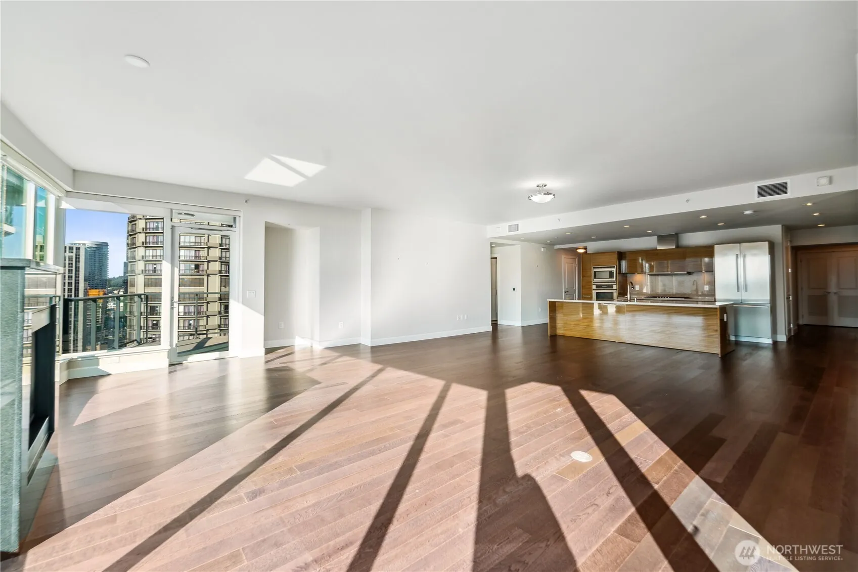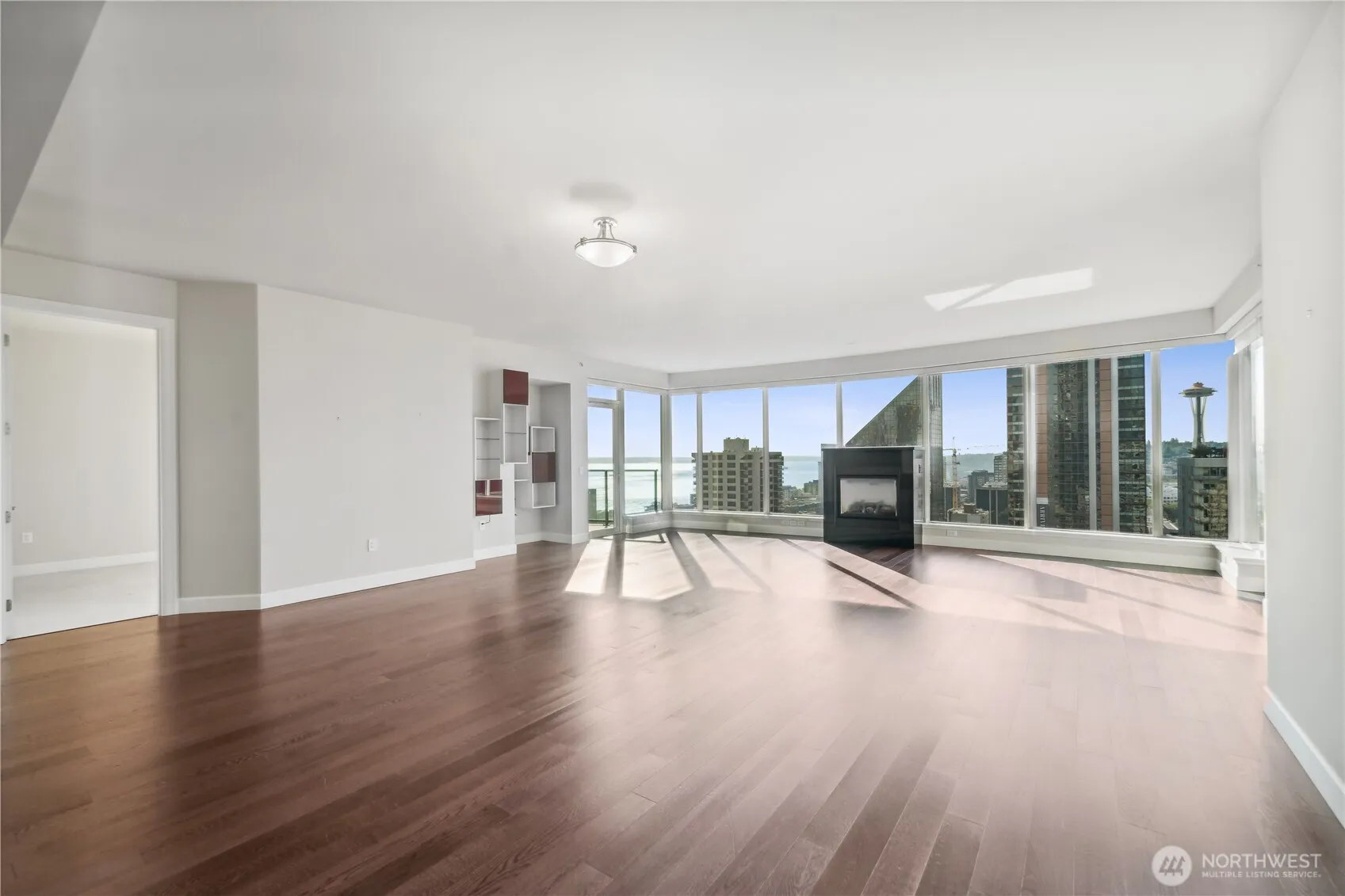 Simply gorgeous, Escala N facing 23rd floor 2BD+den/ 1.75BA w/sweeping views from Lake Union to the Space Needle, & Queen Anne to the Sound! Offering nearly 2000 sqft, 2 private balconies, and a sought-after floorplan. Top of the line finishes incl glossed Pedini cabinetry; walnut hardwood flooring; premium stainless appl w/gas range, slab granite countertops & backsplash; 5-piece marble master BA w soaking tub & glass-enclosed shower; & plush carpeting in the master suite & guest room. This home also offers 9’5″ ceilings, wall-to-wall windows, a high-efficiency a/c, custom lighting, Bosch w/d, and tons of storage. Amenities incl 24hr concierge, wine storage, fitness cntr/spa, theater, wine cave & community bar/rm/deck. W/S/G/Gas/ 2 PRKG