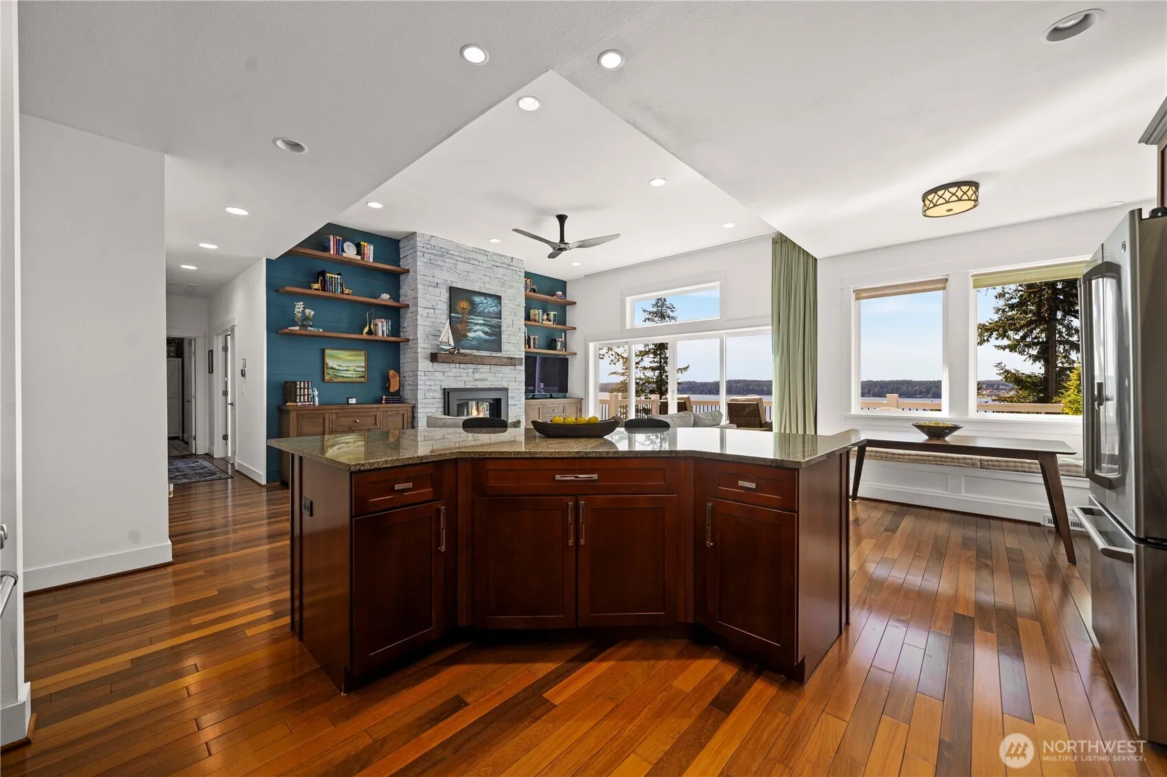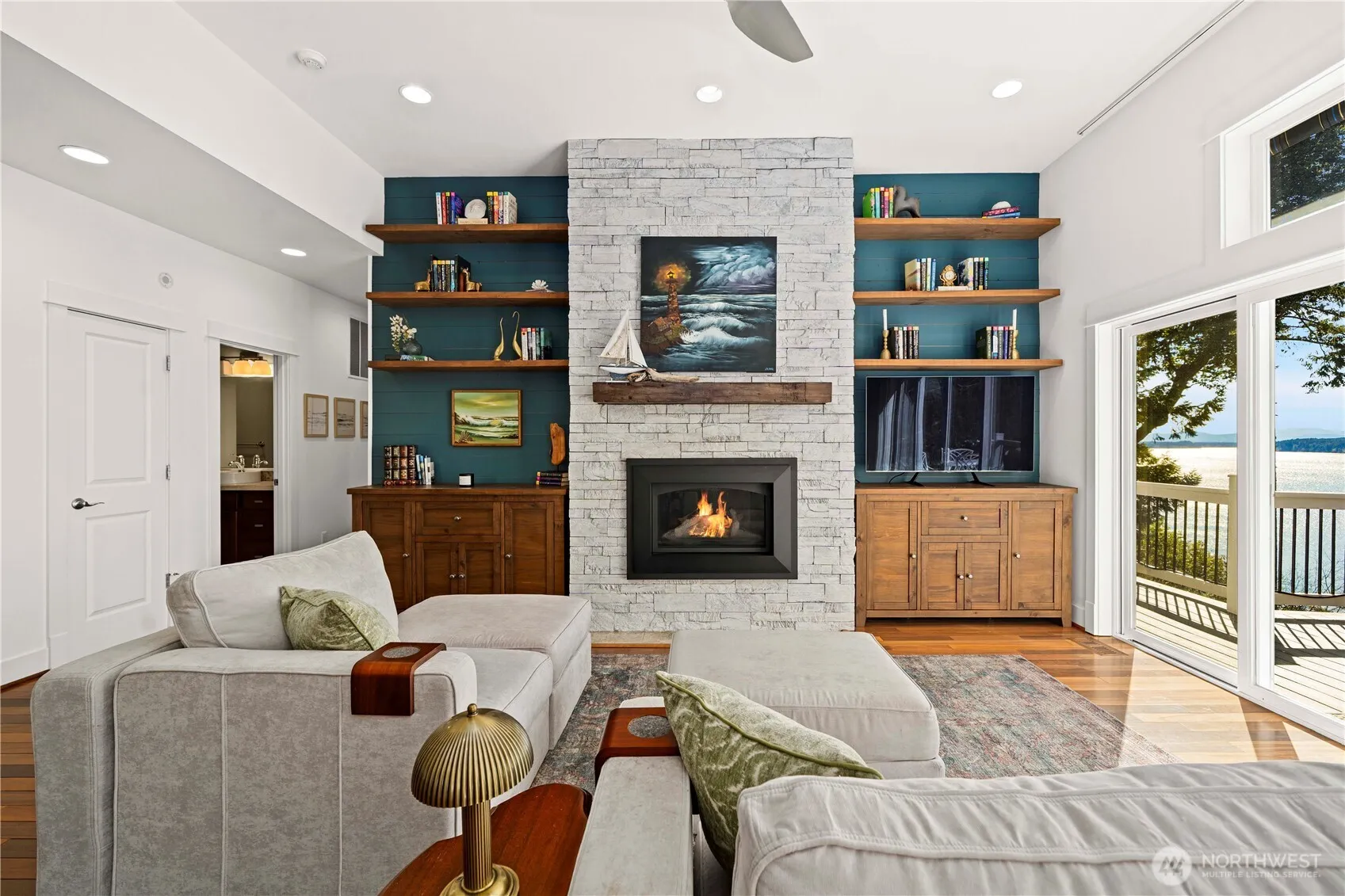 Perched on 2 acres of high-bank Puget Sound waterfront, this exceptional Craftsman retreat captures sweeping views of Harstine Island and the Olympic Mountains. Expansive windows frame the water from the great room, filling the home with natural light and creating a seamless connection to the surrounding landscape. Watch boats pass through the Sound and keep an eye out for the occasional orca sighting. Designed for gathering, the kitchen features a large island, farmhouse sink, propane gas range, pantry, and charming built-in bench seating. Custom millwork, wainscoting, and built-ins add warmth, character, and timeless craftsmanship throughout. The serene primary suite offers a private balcony overlooking the Sound, a striking double-sided fireplace, deep walk-in closet, and five-piece ensuite bath w/ heated floors, soaking tub, & walk-in shower. Fully finished lower level includes a spacious rec room, glass-doored office, 3/4 bath, elegant additional bedroom with oversized walk-in closet, & extra finished rooms for additional bedroom, gym, & storage. Off the bonus room is access to the covered patio & hot tub. Outside, terraced gardens, raised beds, greenhouse w/ brick floors/water/power, chicken coop, garden shed, & zen garden spaces. Solar (10.8kW), whole-house generator, heat pump w/ A/C, tankless water heater, underground propane tank, Starlink internet, & shared well w/ new pump provide modern efficiency & reliability. $0/mo water bill, $35/mo power bill. Preinspected!