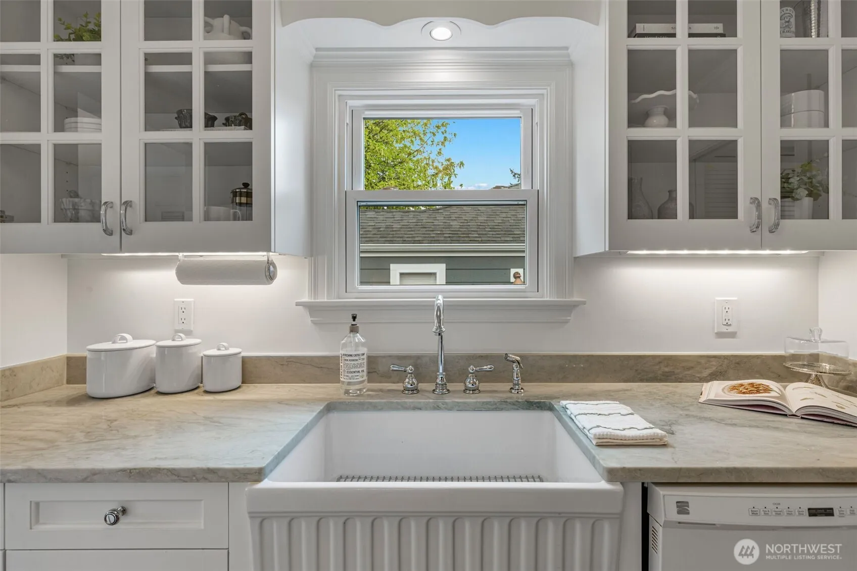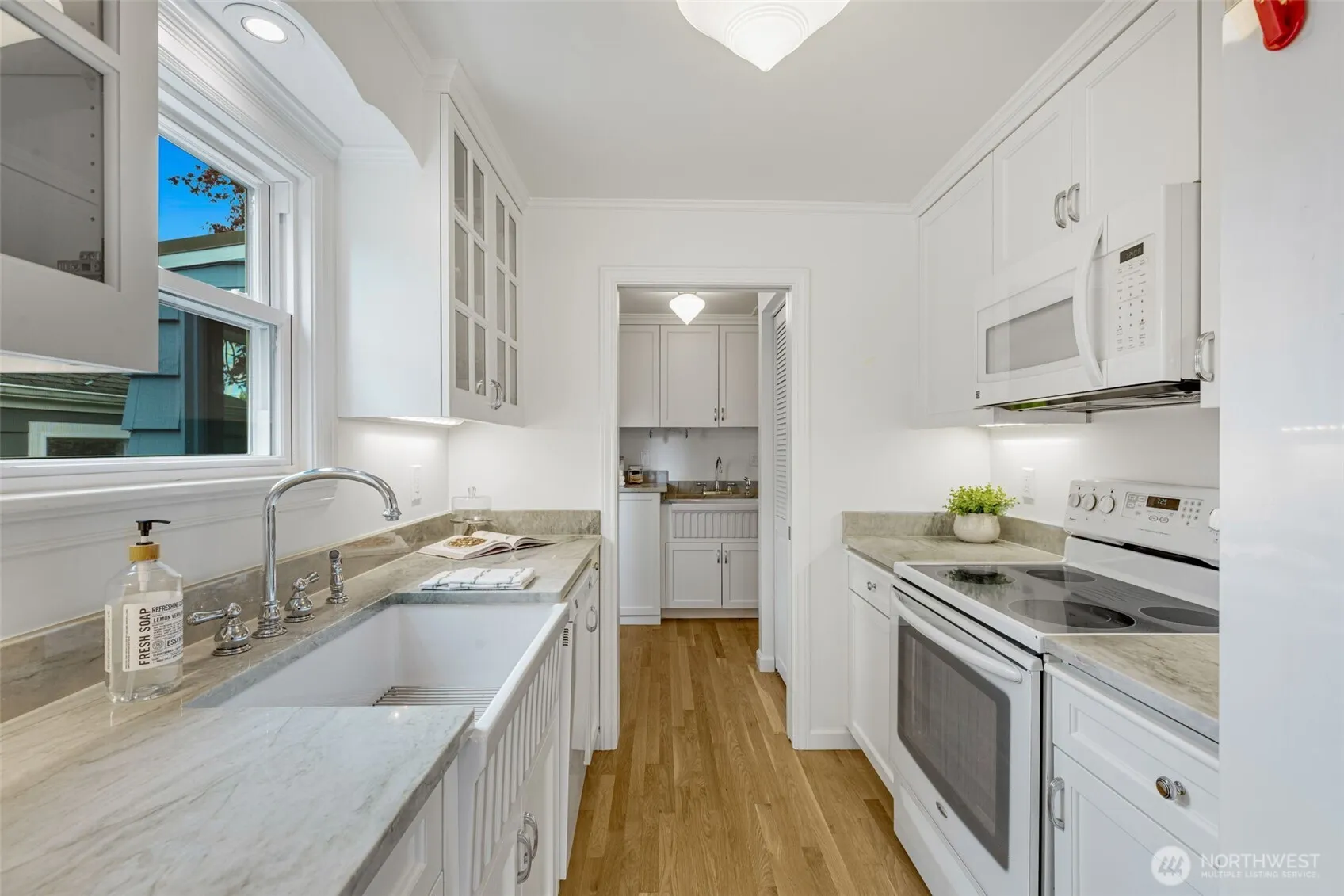 This 1941 original quietly and confidently delivers the perfect formula: period charm paired with updates in all the right places. One-level living keeps everything easy; no stairs, no friction…just smooth flow every day. Two bedrooms, one bathroom and a layout that somehow lives bigger than its footprint, this is efficiency without sacrificing vibe. Warm refinished hardwood floors are underfoot. A darling updated kitchen with stone countertops and clean finishes awaits. Everything – like convenient adjacent pantry/laundry – is on-point. A happy formal dining space and living room with large east-facing windows are great spaces for gathering your people. Step outside to relax and dream; serenity with potential. Fully fenced, the front and back are dialed with landscaping that is intentional without being fussy. You’ll immediately notice the privacy and how sunlight falls just perfectly throughout the day. The detached garage and alley access inspire more than just parking; they hint at upside as you explore the possibility of a larger garage or DADU. All of this in Westwood; close to Lincoln Park for trees and fresh sea breezes, near the Vashon Island ferry when you want to disappear for a minute, and around the corner from Realfine Coffee when your morning needs a jumpstart. Transit is easy, life is simple, and everything you love about the great PNW is right where you want it. Come take a look!