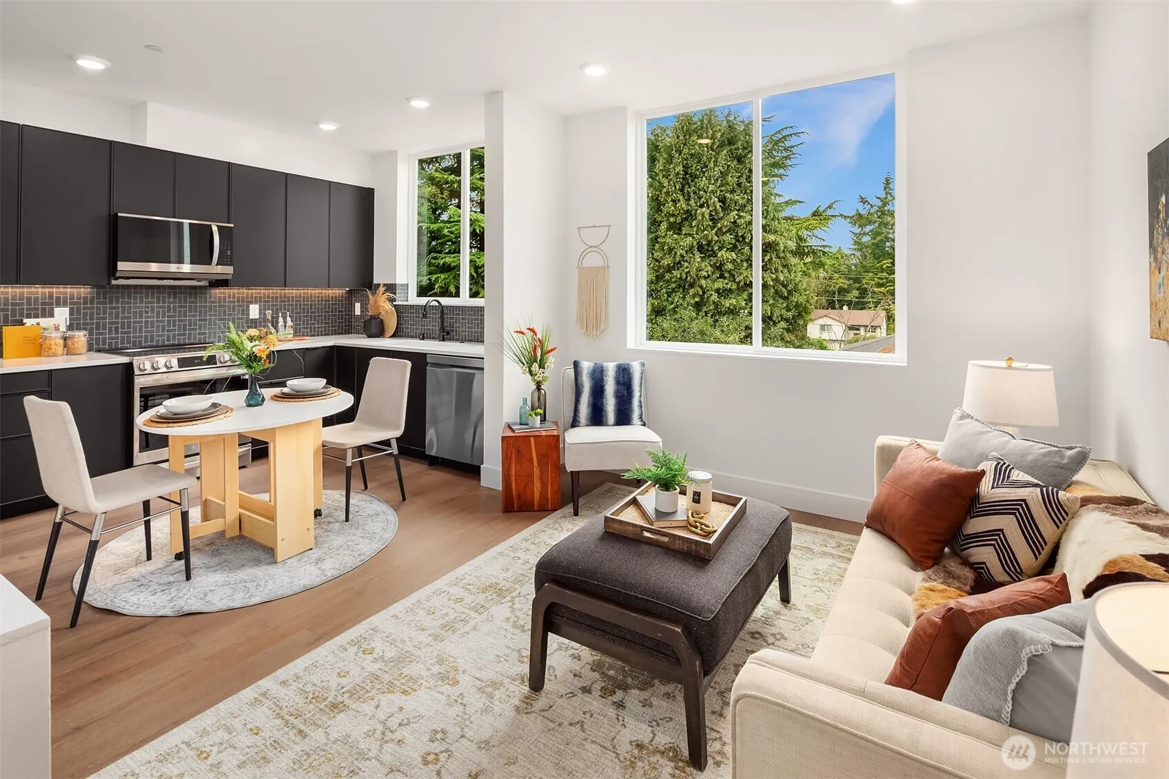 Welcome to this new home from Insignia Development in a fantastic NW Seattle location. Spacious entry leads to first floor bedroom or home office & full bath. Second level has open concept living room & kitchen for entertaining ease. Top floor primary, with spacious ensuite bath and walk-in closet, offers complete privacy from the rest of the home. Enjoy morning coffee or watch the sun go down on your rooftop deck with territorial views, giving you low-maintenance outdoor access. Greenwood & Crown Hill neighborhoods with ample options for dining & night life, plus Met Market blocks away. Attached storage garage for all of your gear, & EV-ready off-street parking included.