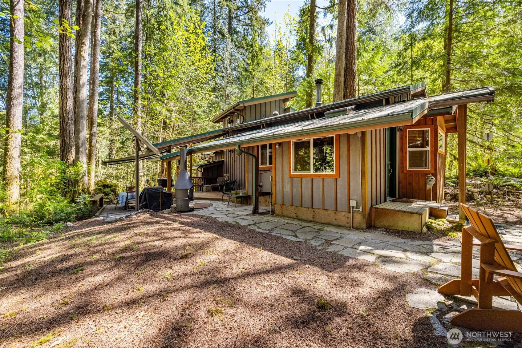 The ultimate mountain getaway in Cascade River Park—truly one of a kind! This thoughtfully designed cabin offers exceptional architecture, charm, and character throughout. The main cabin features two sleeping areas, plus a separate sleeping cabin just outside. Recent upgrades include an updated bathroom, newer metal roof, tankless water heater, cork flooring, quartz countertops, updated solar panels with battery backup, and a generator for added peace of mind. The property includes multiple outbuildings for storage and gear, along with a private sauna—ideal after a day outdoors. Relax on the spacious covered patio and take in the peaceful sounds of the Cascade River below. Inside, enjoy a full-size kitchen, full bathroom, and comfortable living space. Situated on a double lot, this fully furnished, turnkey property is perfect for year-round living, a weekend retreat, or a vacation rental. Private yet close to hiking, fishing, river access, and snow recreation—this is mountain living!