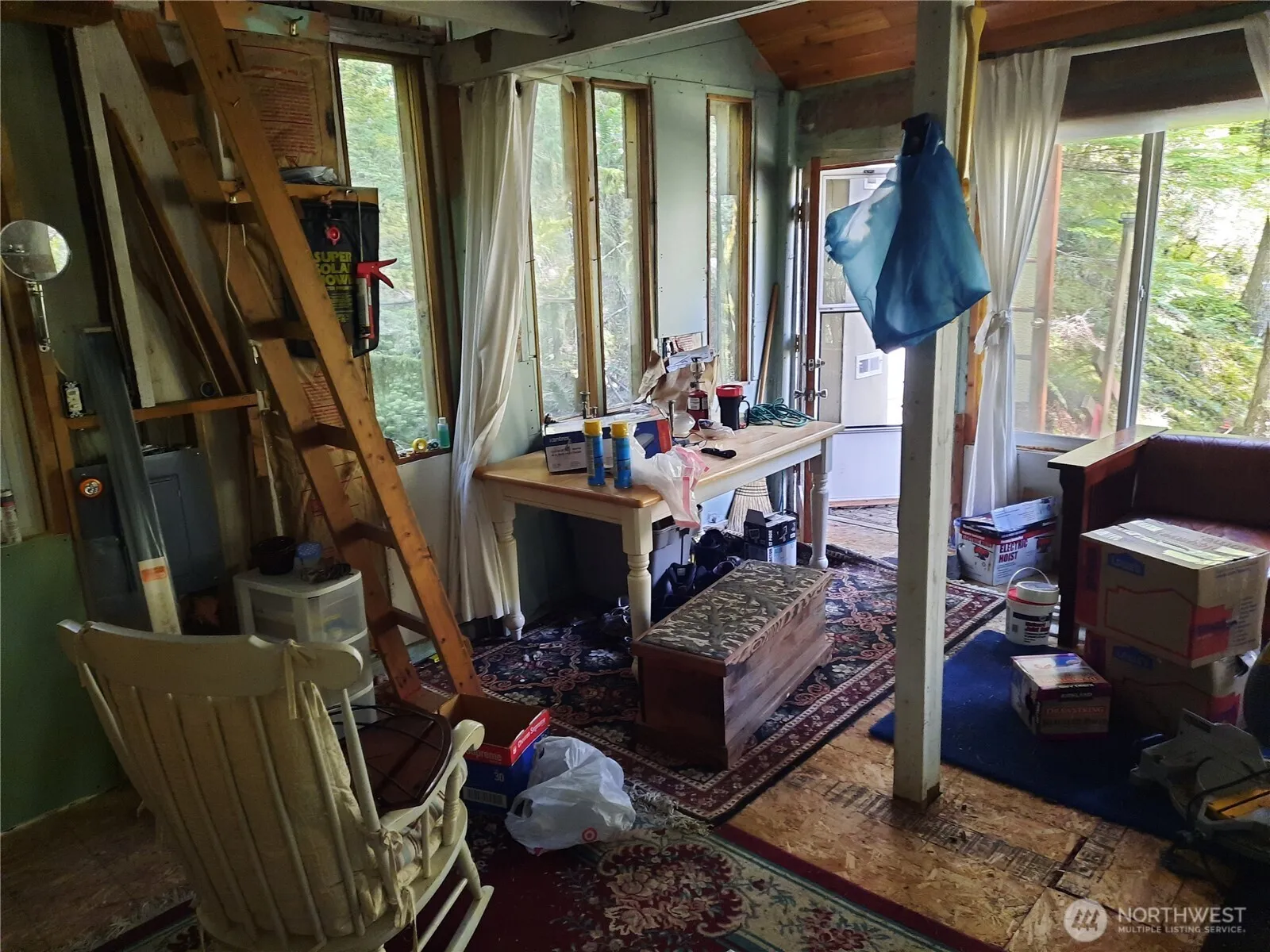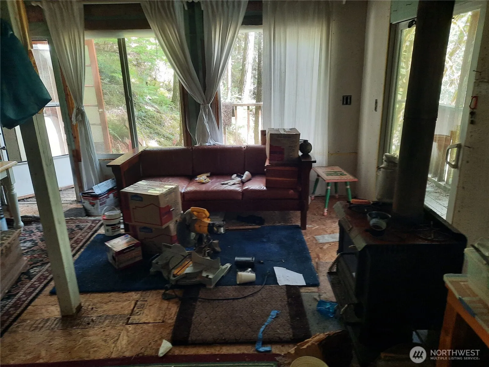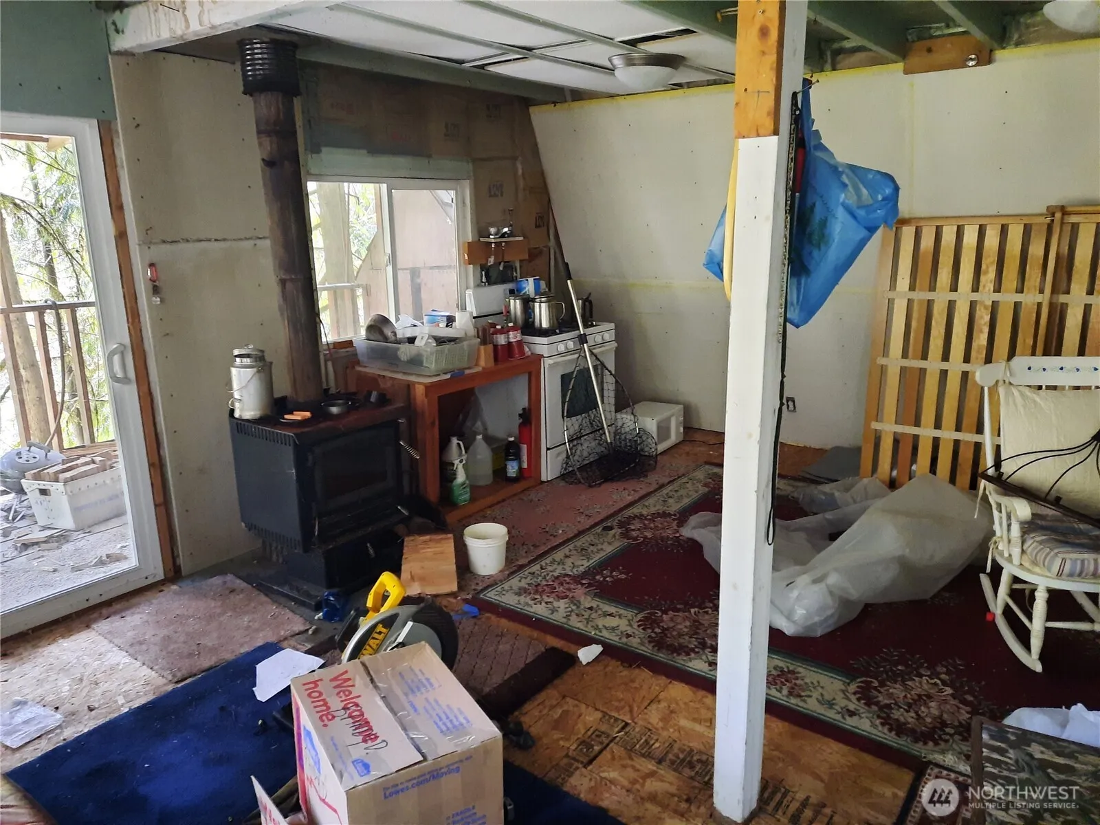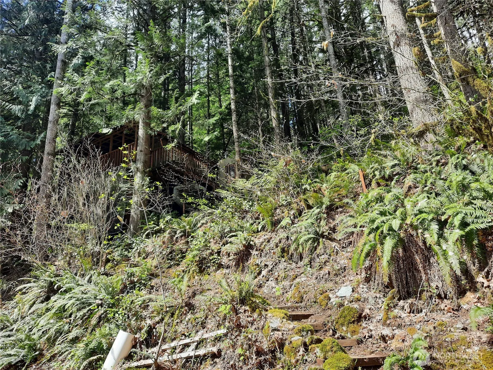 Perched high on a forested slope above the Cascade River, this vintage 1969 cabin feels like a private treehouse nestled among towering Douglas firs. Step up through the evergreens to a wide, covered deck that sits in the canopy, with partial views of the rushing river and surrounding mountains. Inside, the simple, open layout includes a large sleeping loft, full-sized propane range, great woodstove, and is electrically wired for generator with batteries. Comes with gas generator, solar panels, on-demand hot water heater and a composting toilet, creating an off-grid retreat you can enjoy as-is or update to your vision. Building materials (Pergo flooring, milled fir and pine siding, enough for whole cabin) included in sale. Use cabin as your basecamp for hiking, fishing, and boating by day, then unwind at night to the sound of the river below and the wind in the trees. Elevated well above the road, the cabin offers a secluded, treetop feel with secure year-round access and no restrictions on length of stay. The lot above MLS Listing Number 2512744 is also available for those seeking even more space to expand their forest hideaway. Priced to sell at below assessed value.