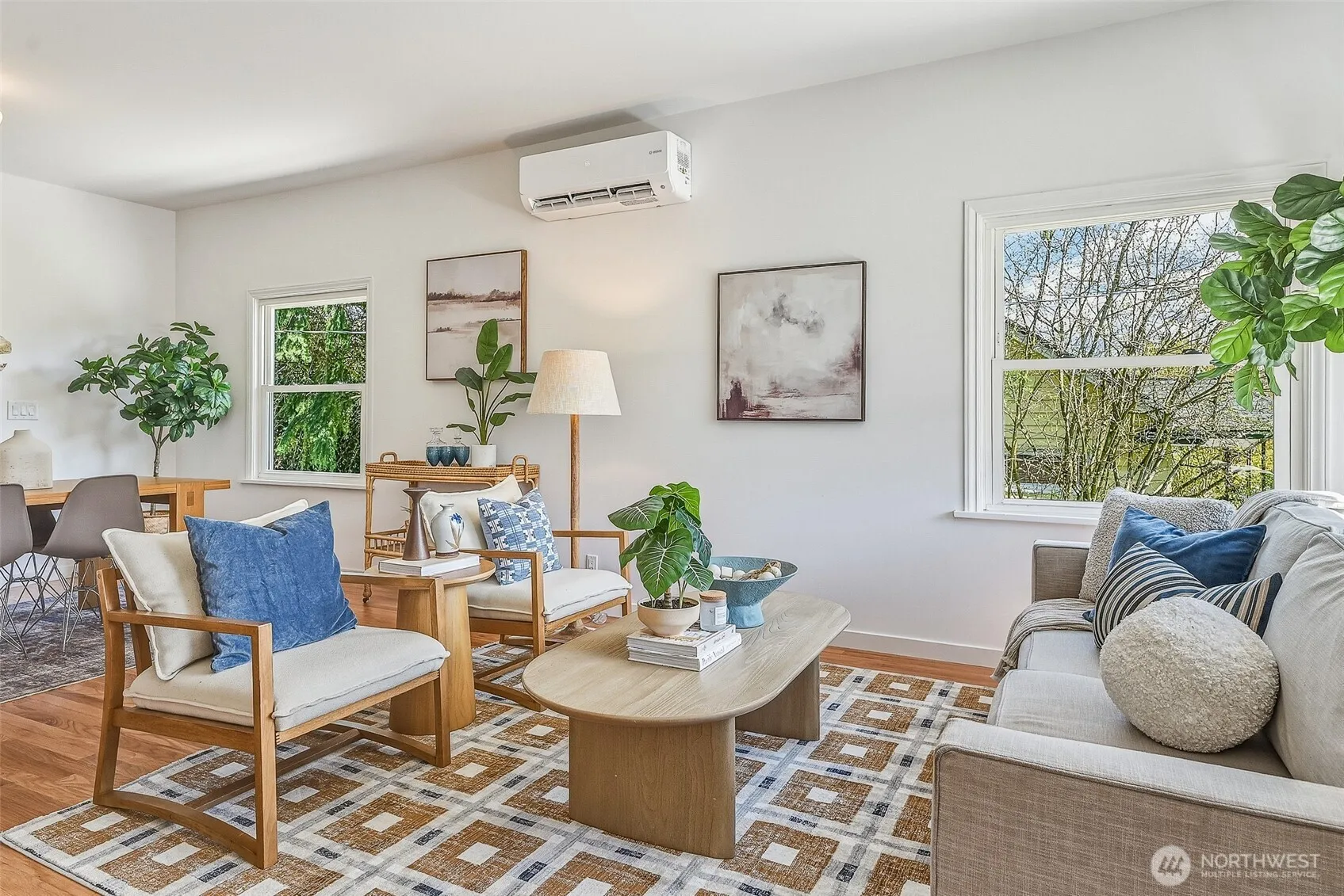 Welcome to this lovingly restored Craftsman bungalow in the heart of Hillman City. Gleaming hardwoods, refreshed bathrooms, and updated systems — including mini-splits set the tone for living in a timeless package. The main level impresses with 9-foot ceilings, tons of natural light, a seamless living and dining flow, beautifully appointed kitchen with new appliances, & two spacious bedrooms and full bath. The lower fully finished level has a large family room, third bedroom, and ¾ bath that provide flexible space for guests, work, or play. Already plumbed for a kitchen, it’s primed for an ADU conversion and the rental income opportunity that comes with it. Outside, a sun-drenched deck overlooks mature landscaping with lovely territorial views toward Columbia City, while the private rear yard offers room to garden and play. Fabulous location, just steps from The Flour Box, Twilight, Archipelago, Delish, and the full vibrancy of Hillman City.