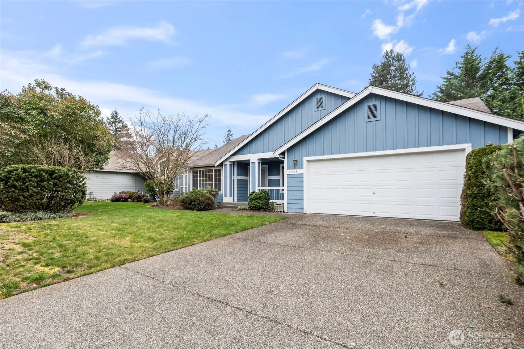 Move-In Ready Rambler in Desirable Stoneway – First Time on Market! Welcome to seamless main-level living in a quiet, sought-after community. This stunning 3-bedroom, 2-full bath home has been beautifully updated with fresh interior paint and brand-new flooring and carpet throughout! The bright, open-concept floor plan boasts vaulted ceilings, skylights, and a cozy gas fireplace with a tile surround. Enjoy a spacious primary suite featuring a large walk-in closet and a 5-piece en-suite bath with a soaking tub and double sinks. Step outside to enjoy the low-maintenance yard with a patio, perfect for relaxing. Complete with a 2-car attached garage, great schools, and neighborhood sidewalks, this recently refreshed home is an absolute must-see!