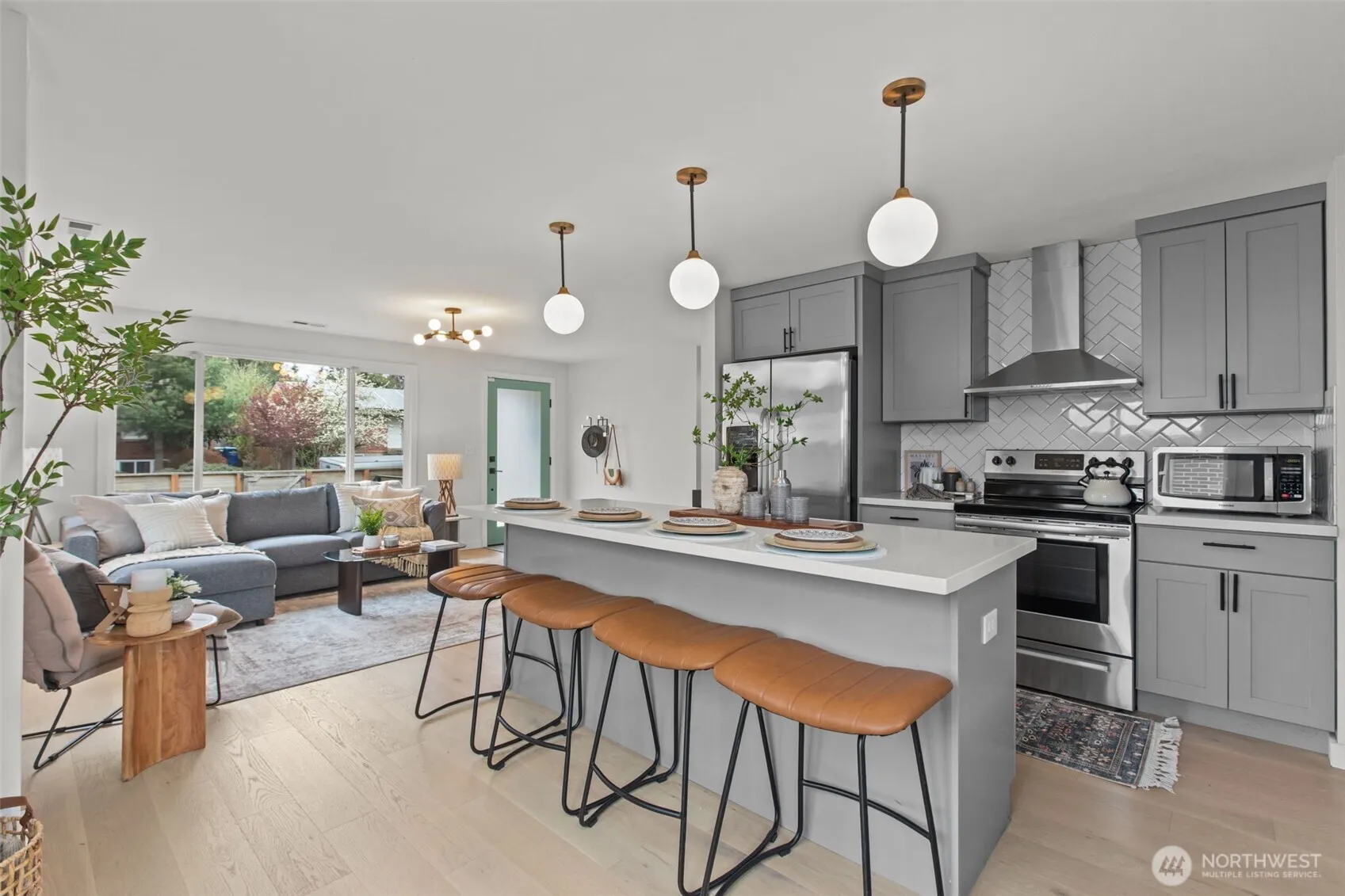 Welcome to your move in ready, updated home that is walking distance to Seward Park! New engineered hardwood flooring throughout, new roof, EV charger, designer bathrooms and California closets. Entry walks into an open floor plan in the kitchen for entertaining. Newer electrical, plumbing, kitchen, HVAC. Daylight basement offers a large family room, two bedrooms, full bath and laundry room with exit to a fenced backyard and alleyway. This home is right in the heart of Hillman City, Seward Park and Columbia City. Experience walkability, community and convenience with this turnkey home. Pre-inspected