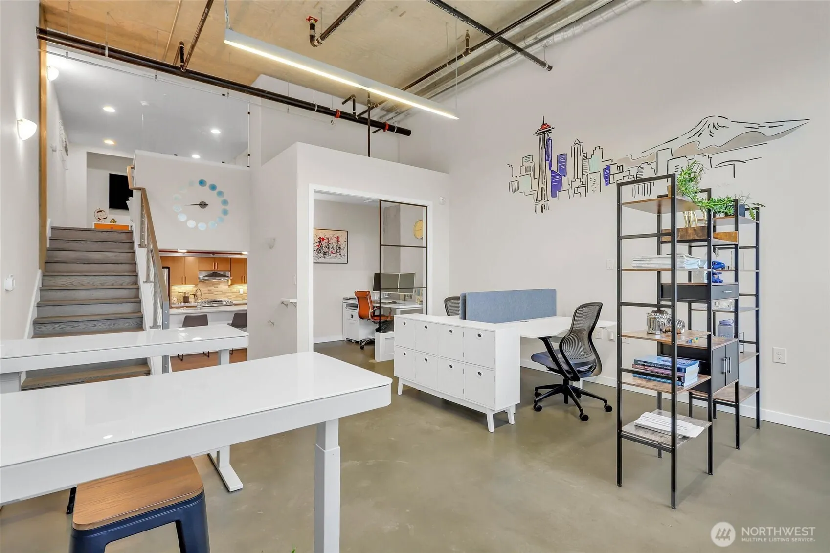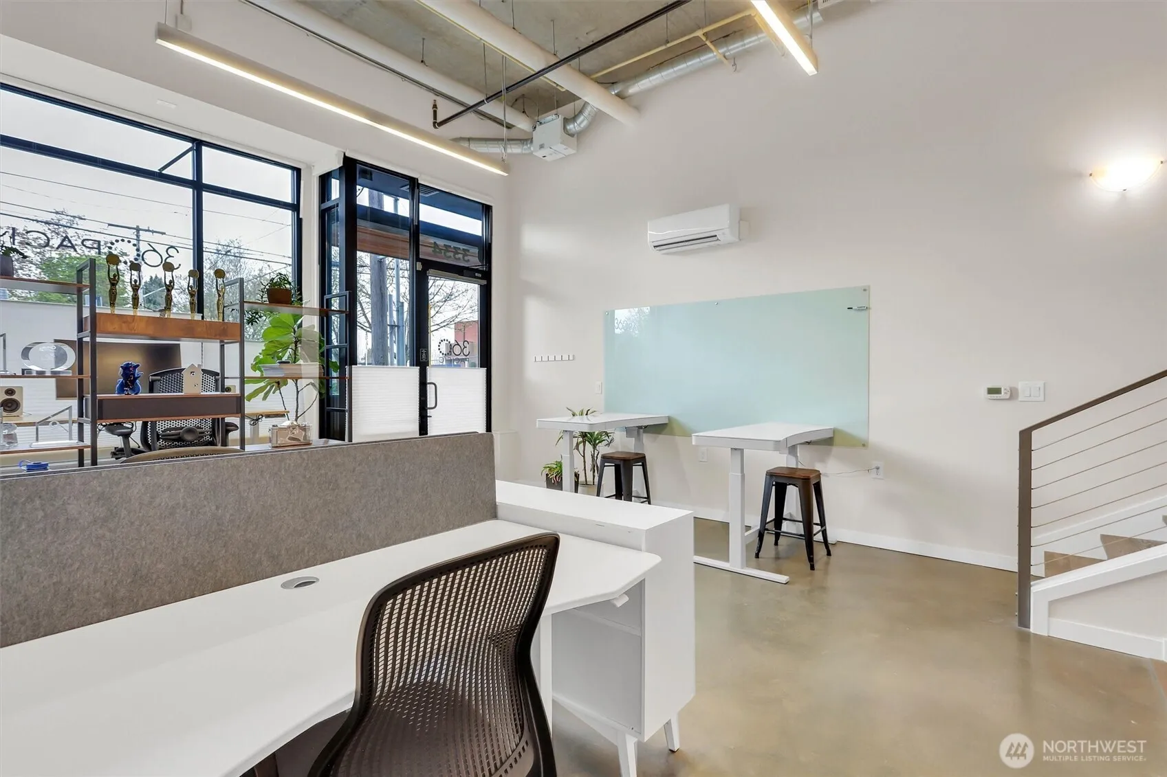 Impressive live/work loft-style condo in a highly desirable location. This bright, open space features a modern blend of concrete, glass, and steel, offering exceptional style, comfort, and flexibility. Highlights include soaring ceilings, polished concrete and hardwood floors, a beautifully appointed kitchen, custom blinds, in-unit laundry, A/C, and garage parking. Perfect for residential living, office, retail use, or a combination of all. Conveniently located near the Roosevelt light rail, University Village, parks, shops, restaurants, and the University of Washington.